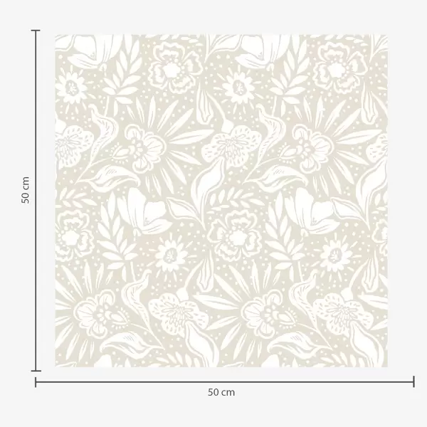 Behang Wit lineair bloemenornament op een beige achtergrond Nr. a00956