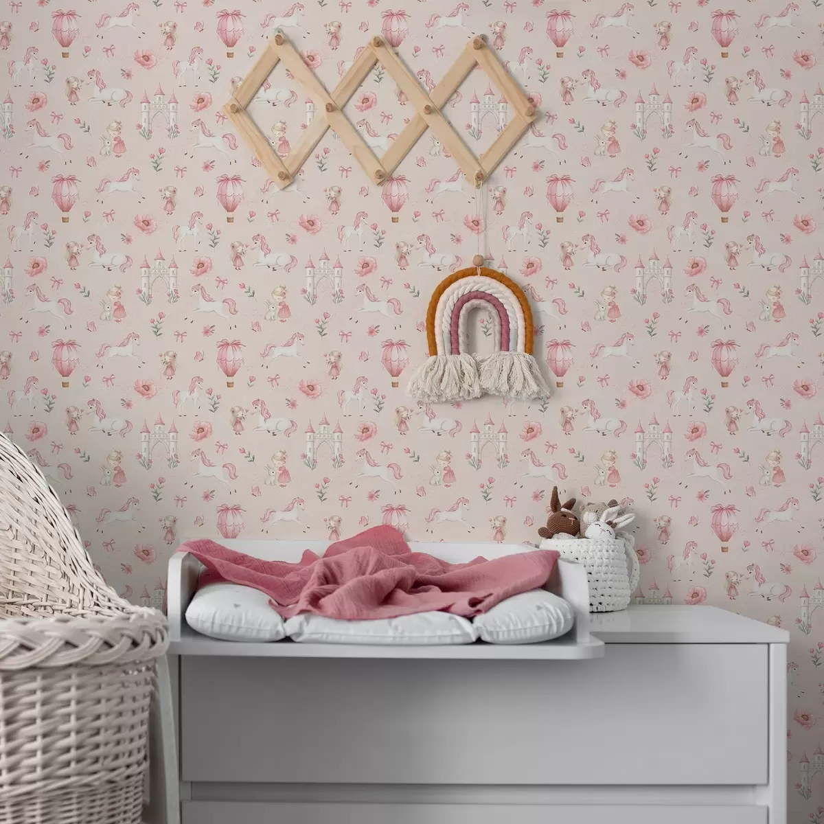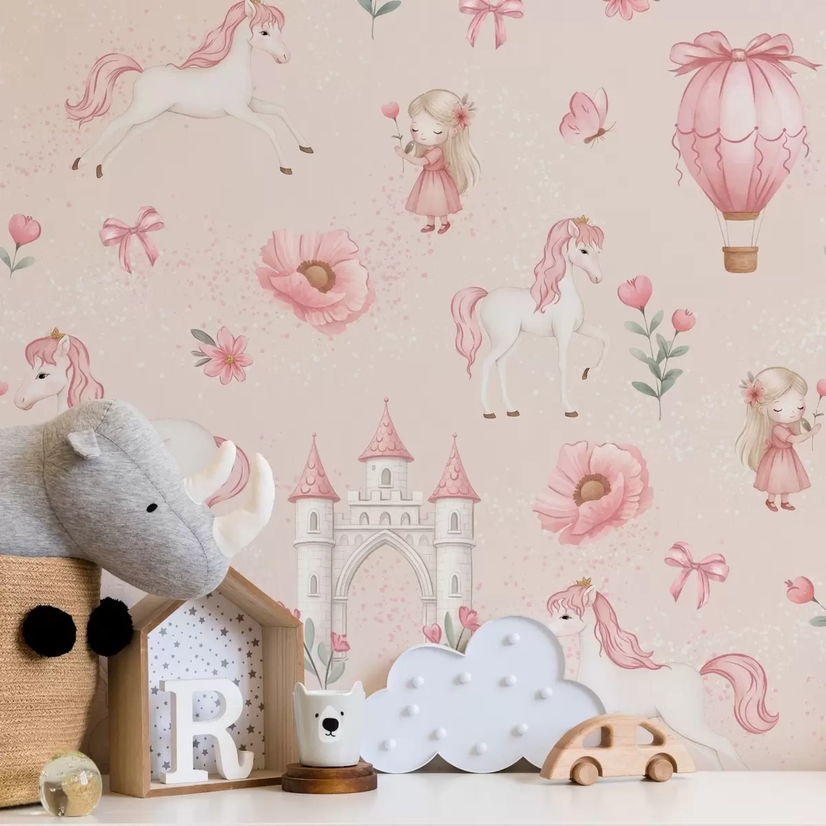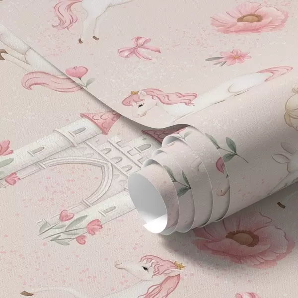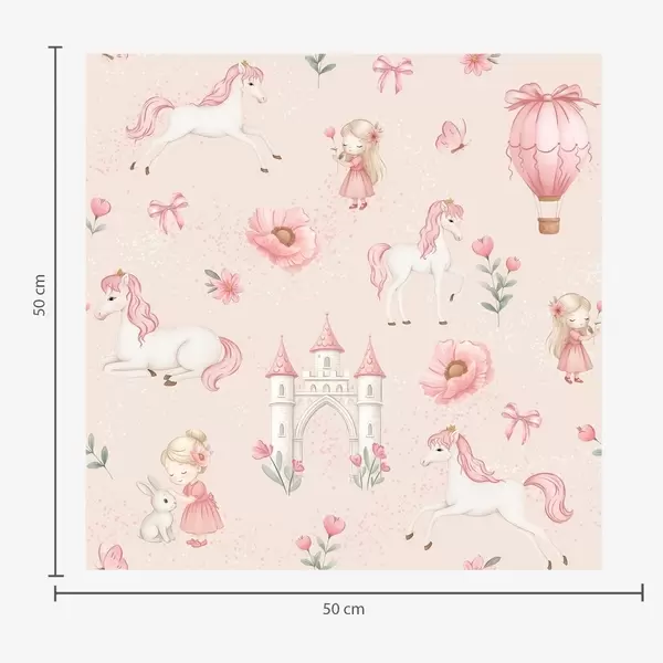 Behang Roze eenhoorns, kleine meisjes en een kasteel op een zachte achtergrond Nr. a00957