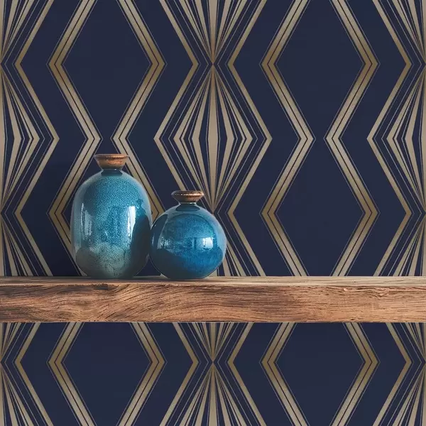 Behang Donkerblauwe achtergrond met geometrische ruiten en zigzaglijnen Nr. a00974v2