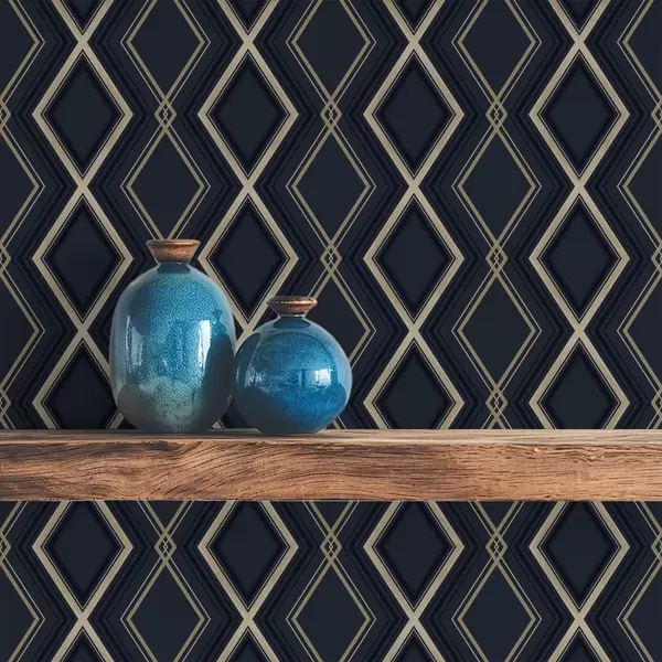 Behang Donkerblauw ruitpatroon met dunne lichte lijnen Nr. a00975