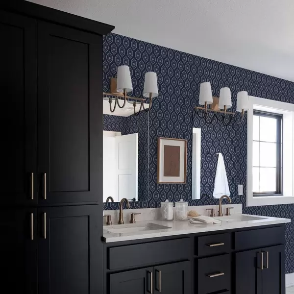 Behang Contrasterende druppelmotieven met een bloem op een donkerblauwe achtergrond Nr. a00977v1