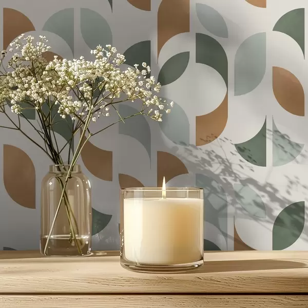 Behang Verticale kolommen van halve cirkels en bladeren, groen-terracotta Nr. a00986