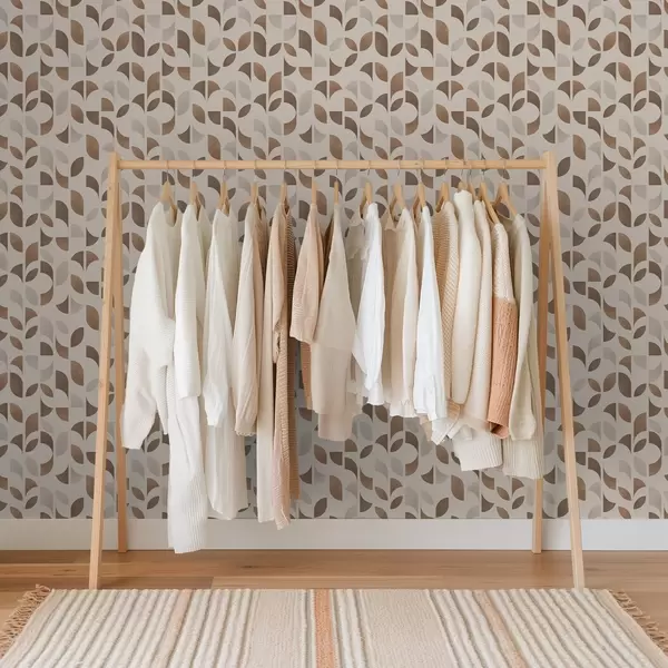 Behang Ritme van halve cirkels en bladeren in warme karamelbruine tinten Nr. a00986v1