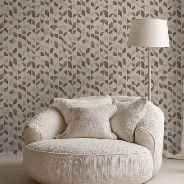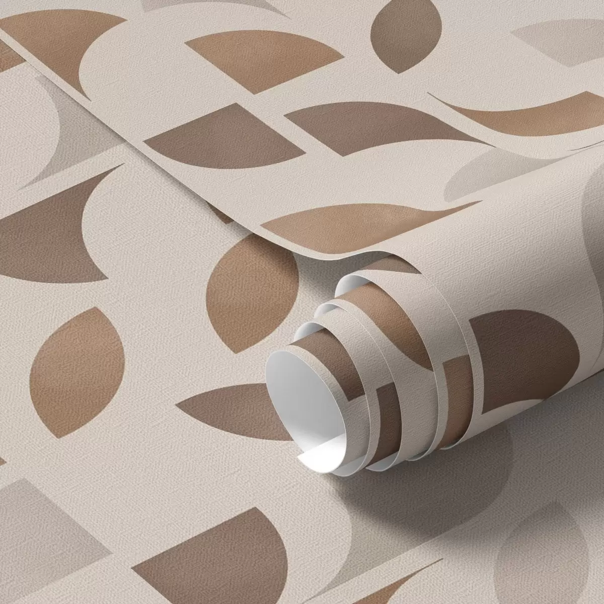 Behang Ritme van halve cirkels en bladeren in warme karamelbruine tinten Nr. a00986v1