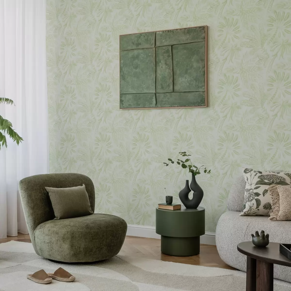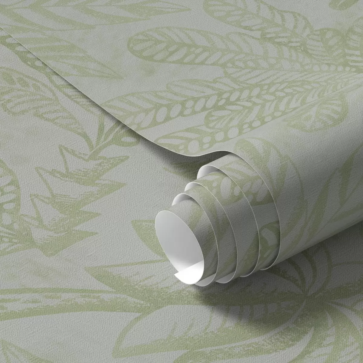 Behang Geschetste tropische bladeren in frisse lichtgroene tinten Nr. a01001v1