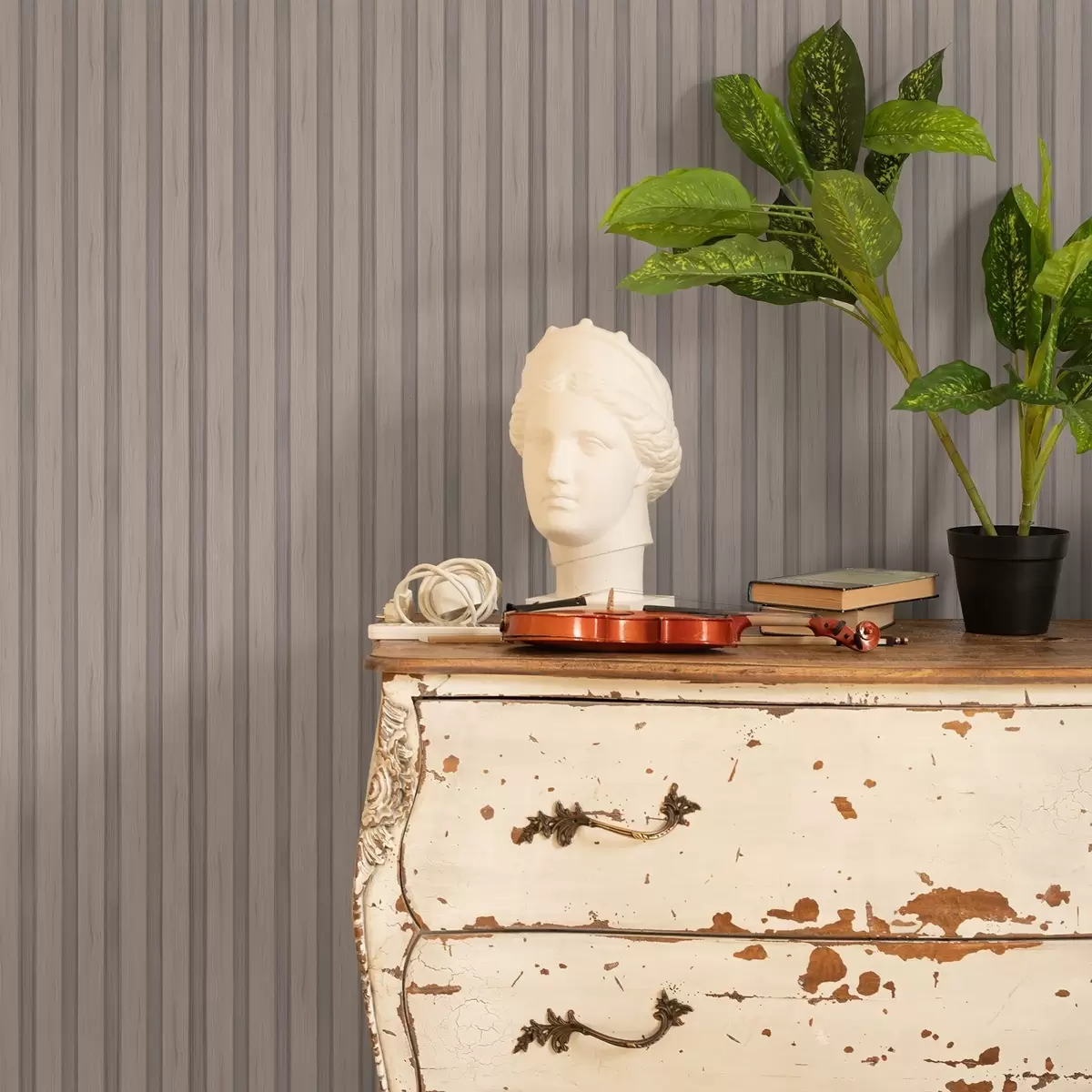 Behang Lichte verticale lamellen in een beige-grijs kleurenpalet Nr. a01054v1