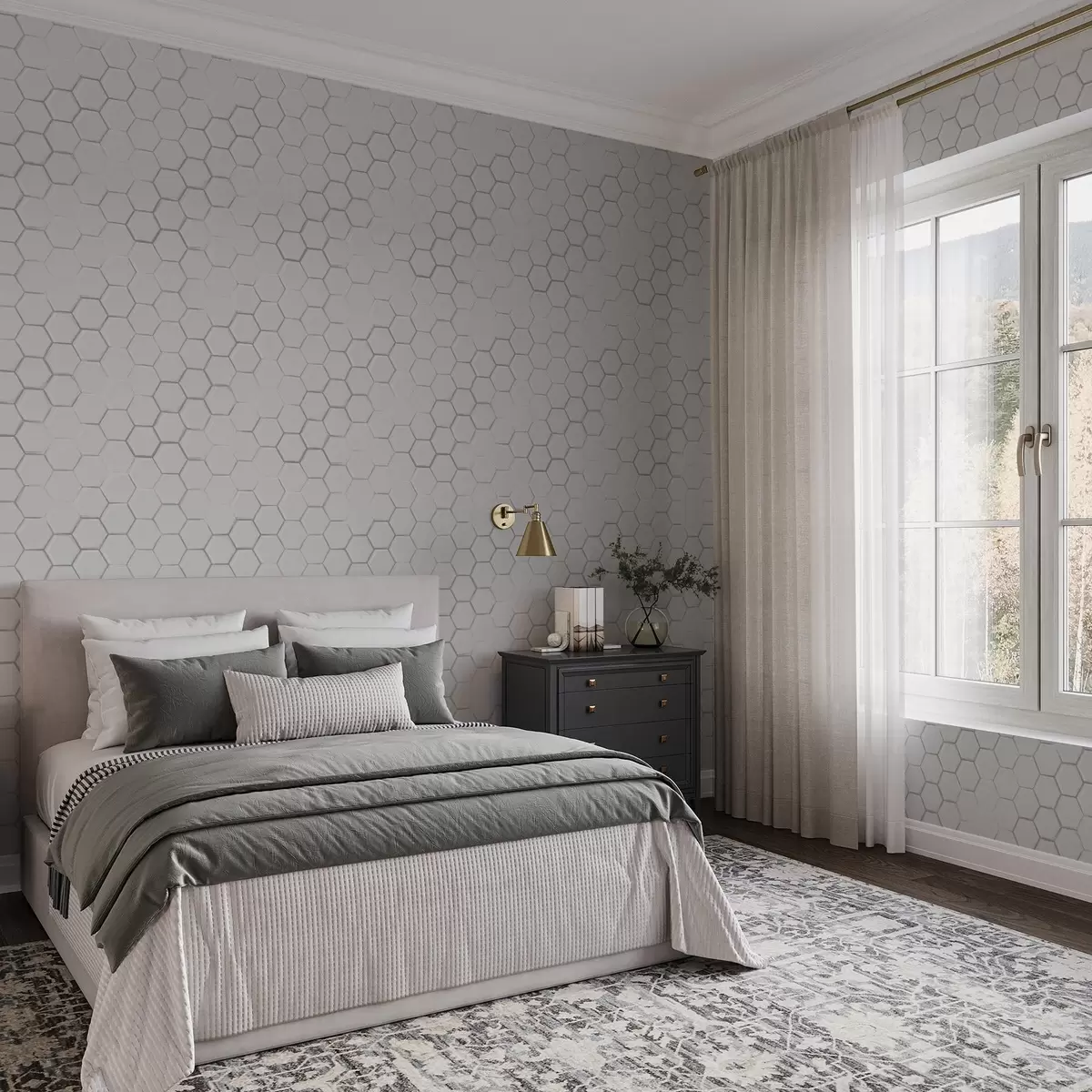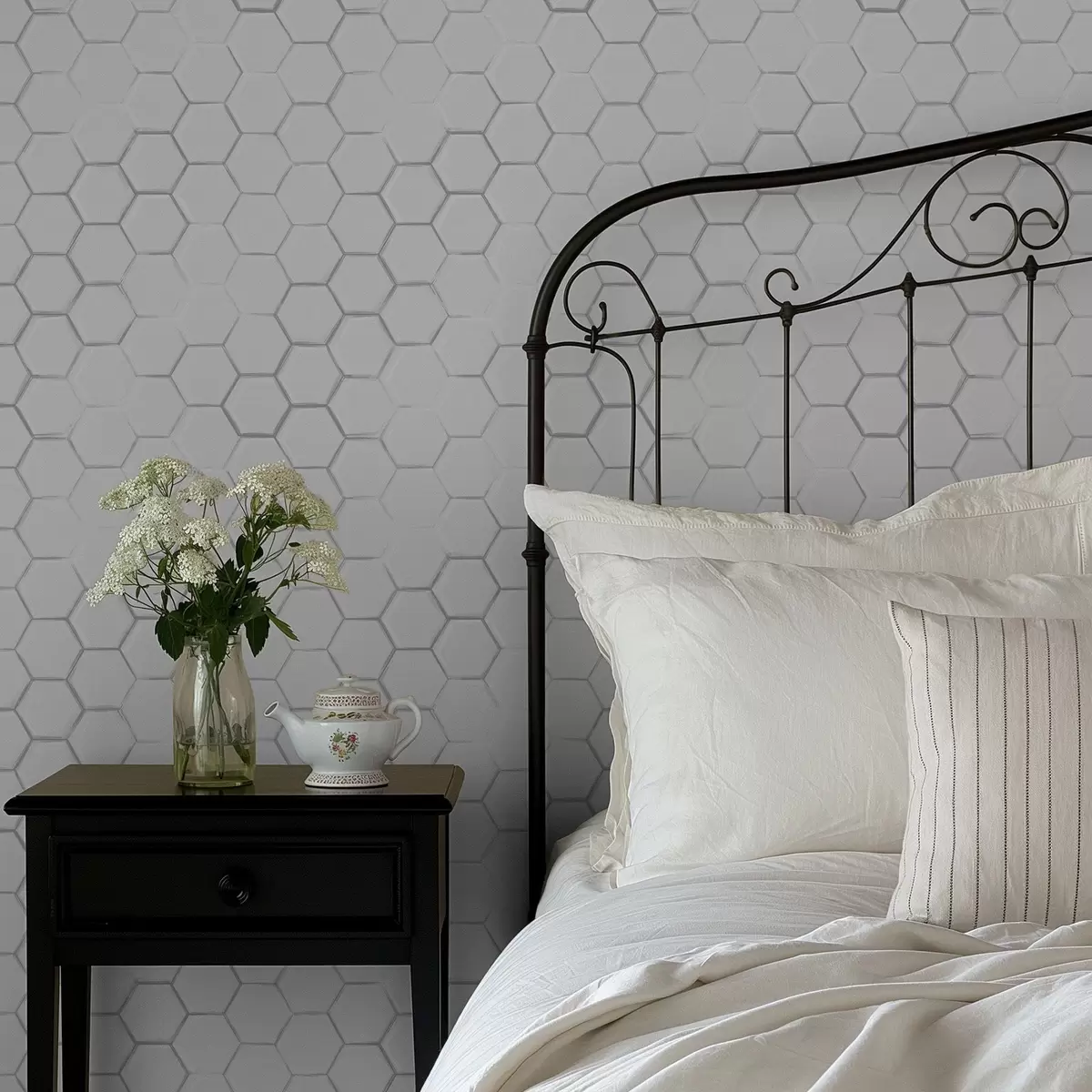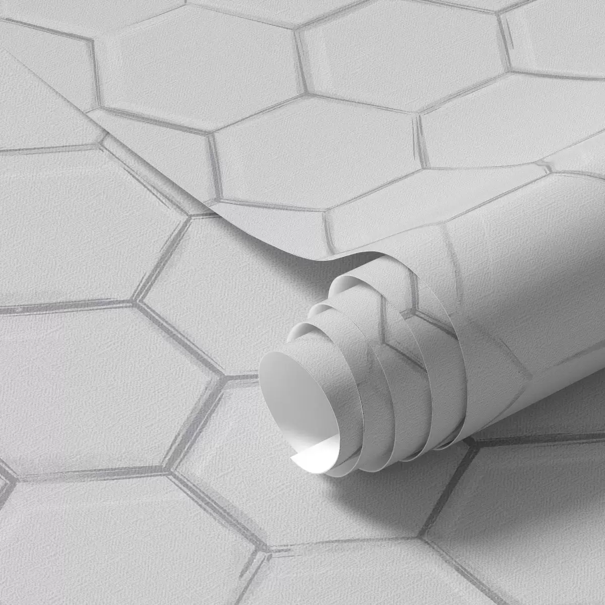 Behang Witte driedimensionale zeshoeken op een gladde achtergrond Nr. a01059