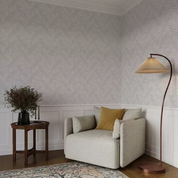 Behang Licht honingraatpatroon met dunne grijze contouren Nr. a01061