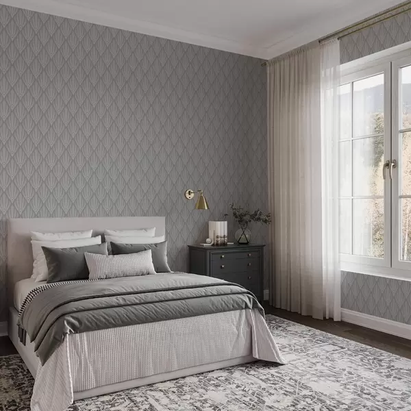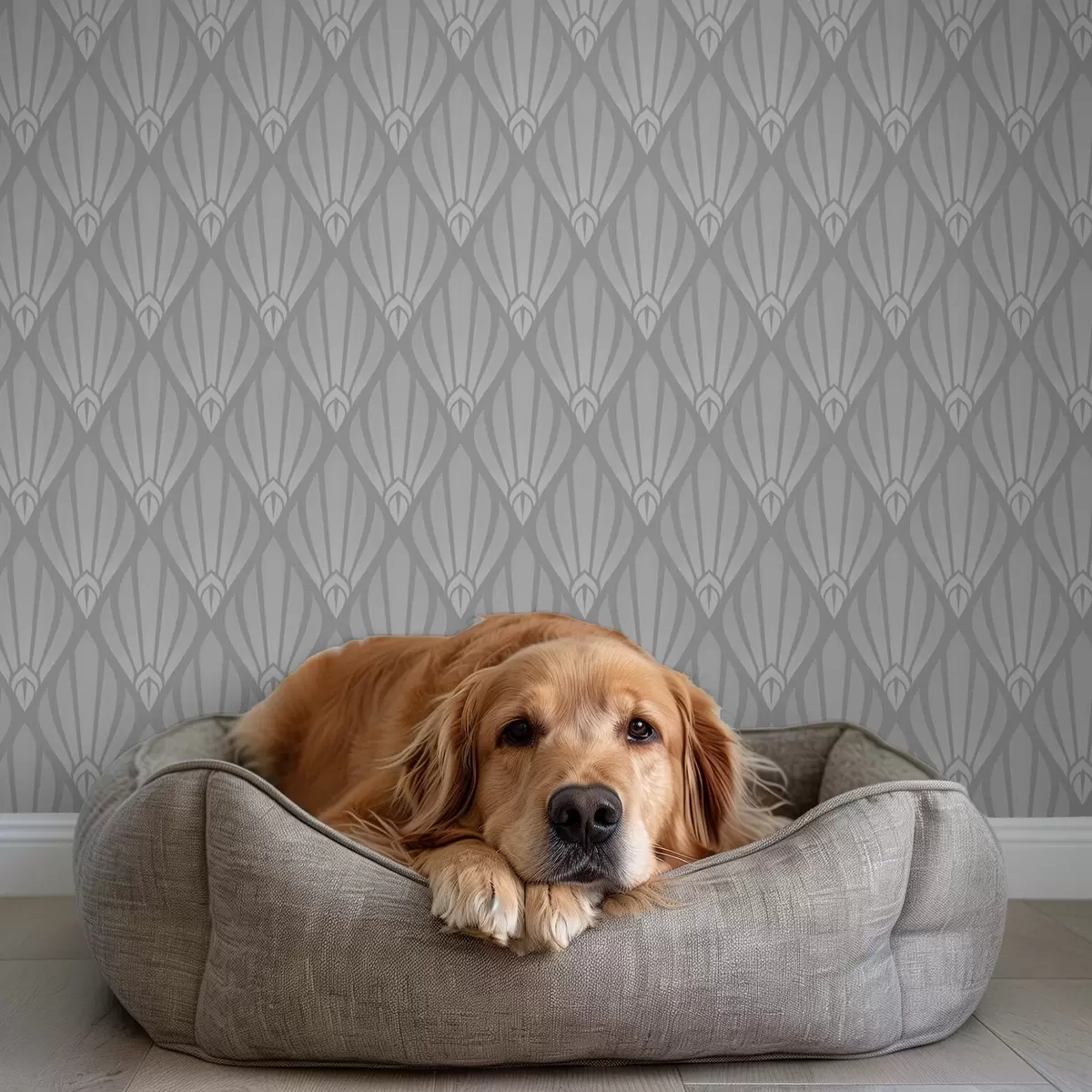 Behang Grijze art deco met waaiervormige vormen Nr. a01064