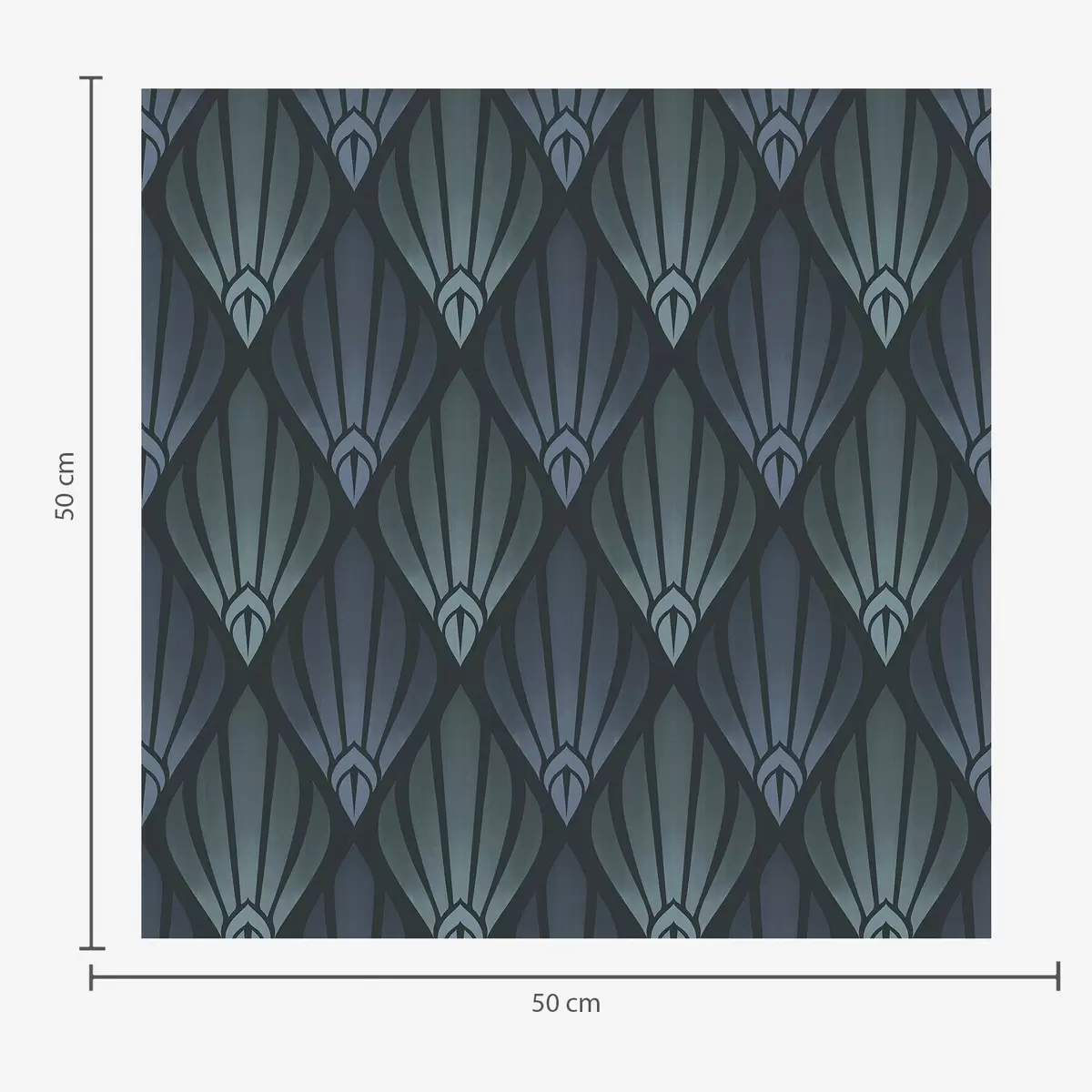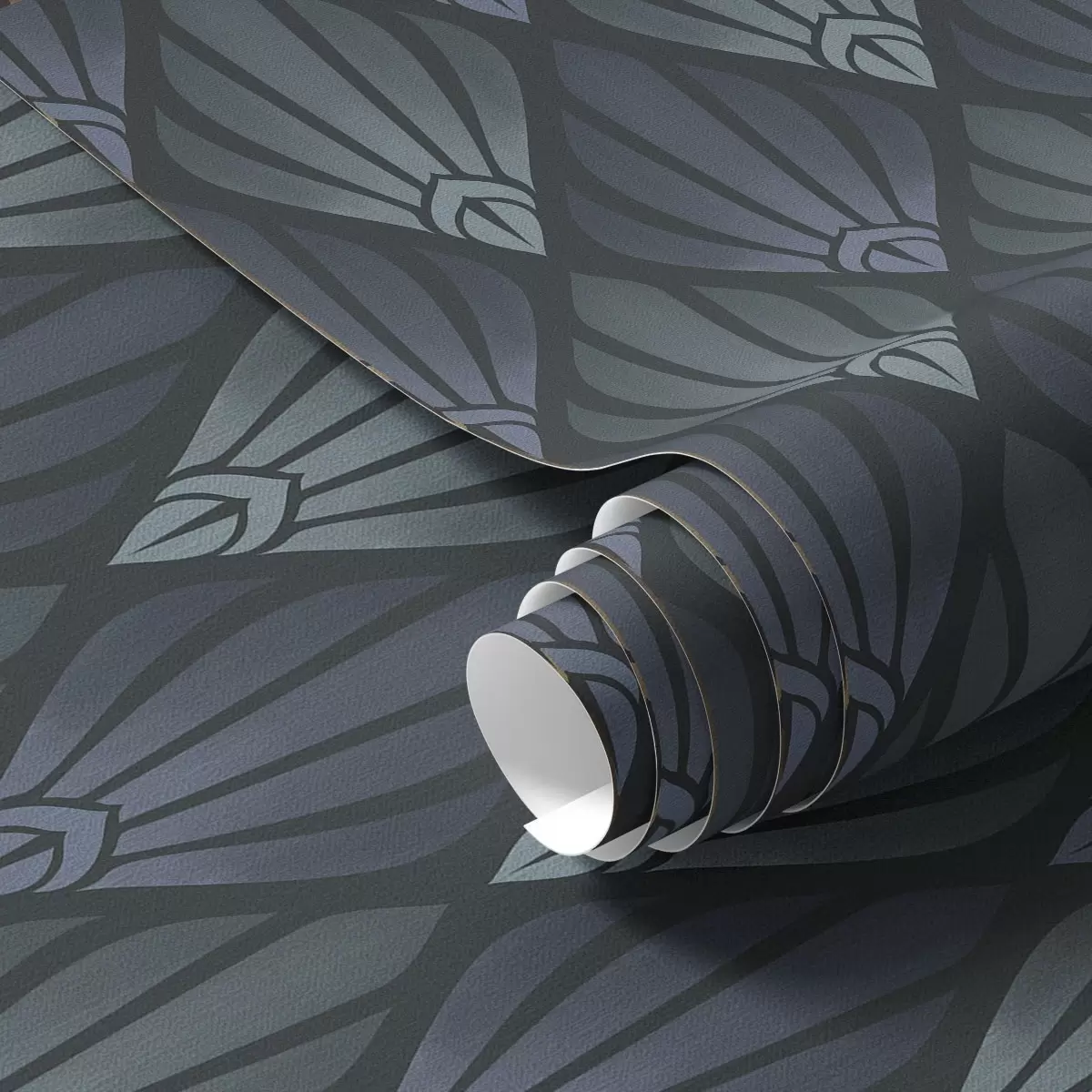 Behang Koel blauwgrijs Art Deco met waaiervormige vormen Nr. a01064v3
