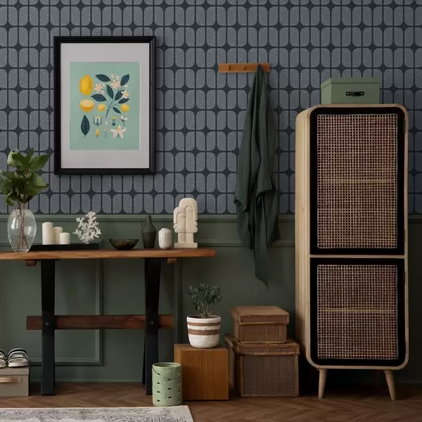 Behang Donkerblauwe achtergrond met grijze mozaïek van afgeronde tegels Nr. a01068v1