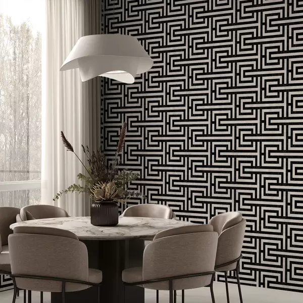 Behang Zwart-wit geometrisch doolhofpatroon Nr. a01073