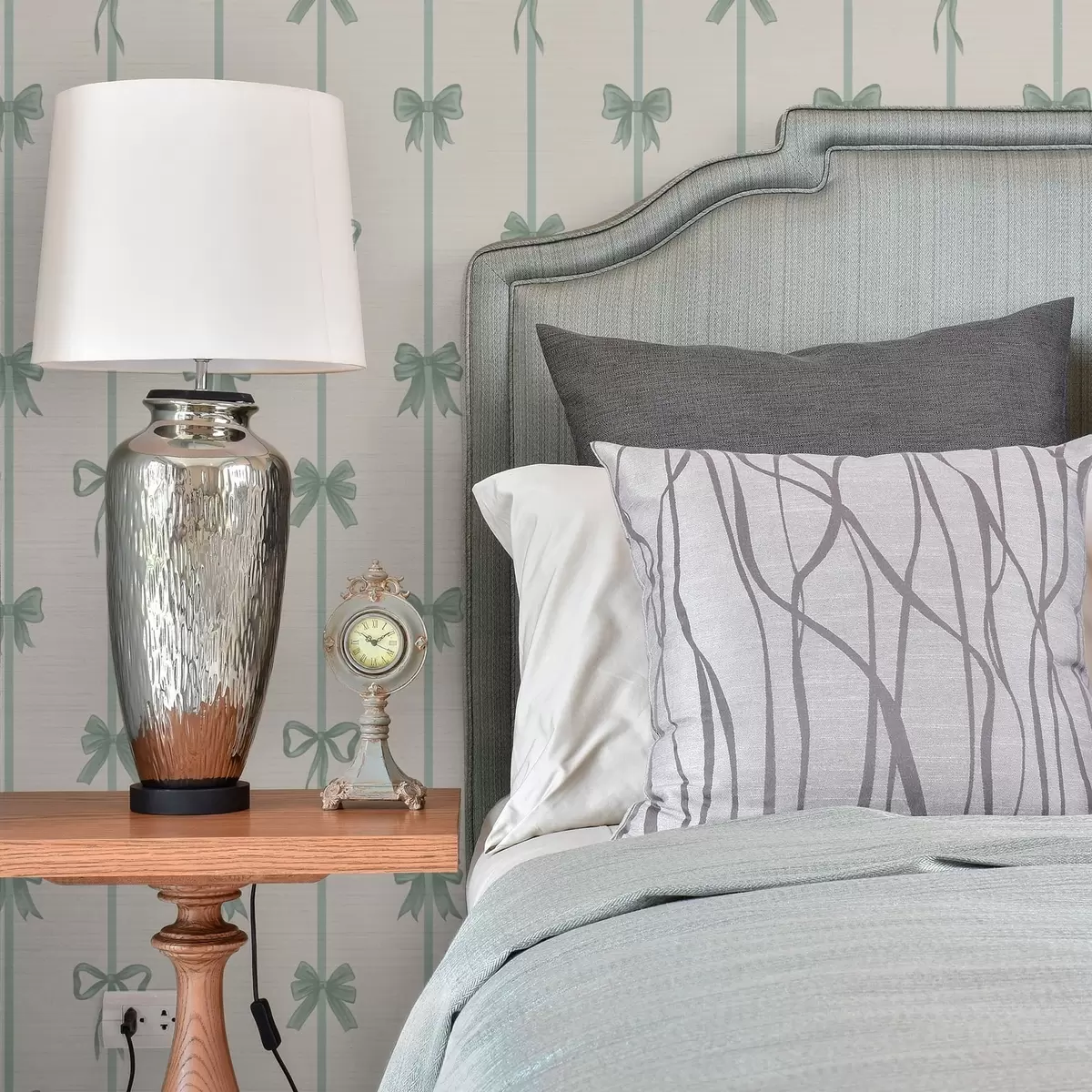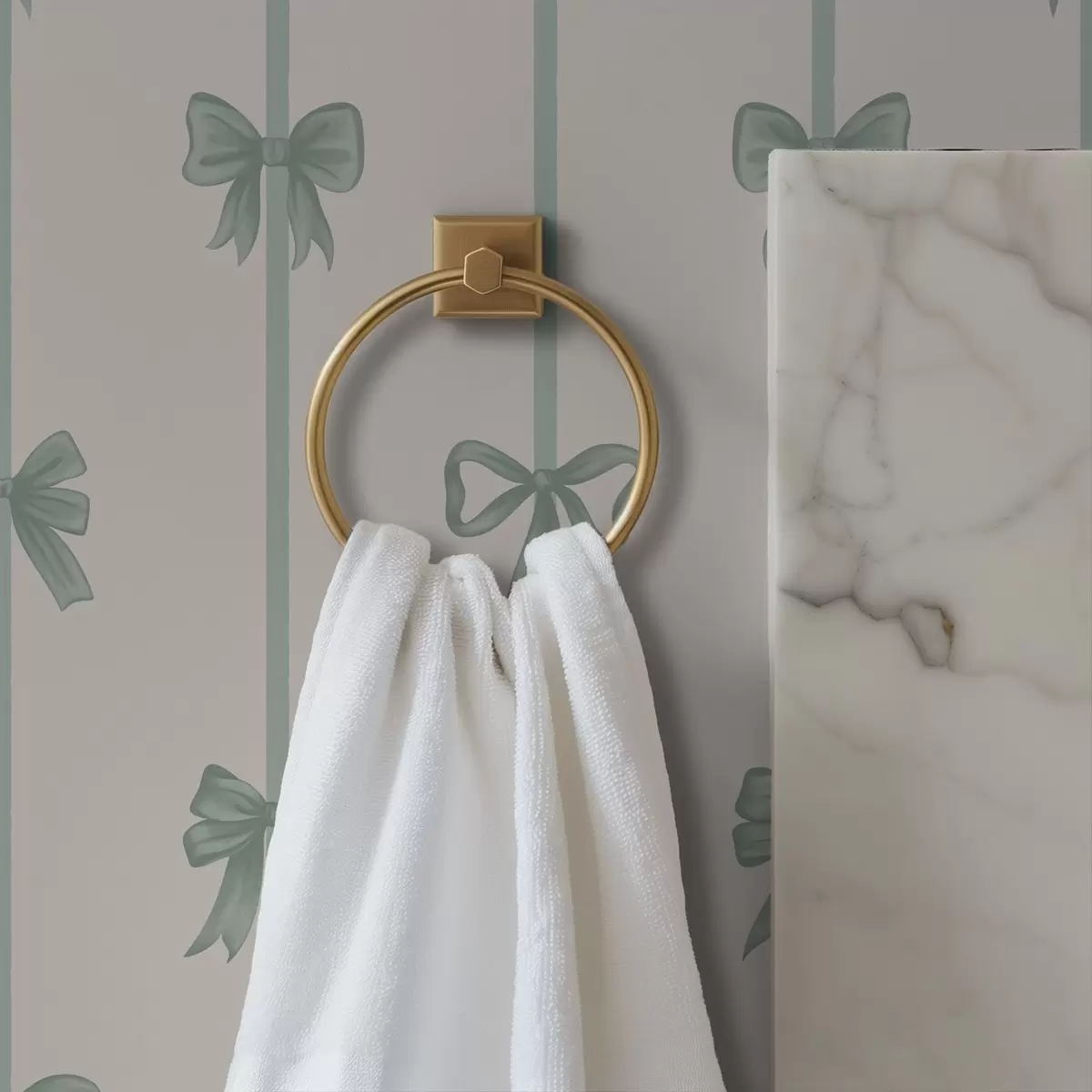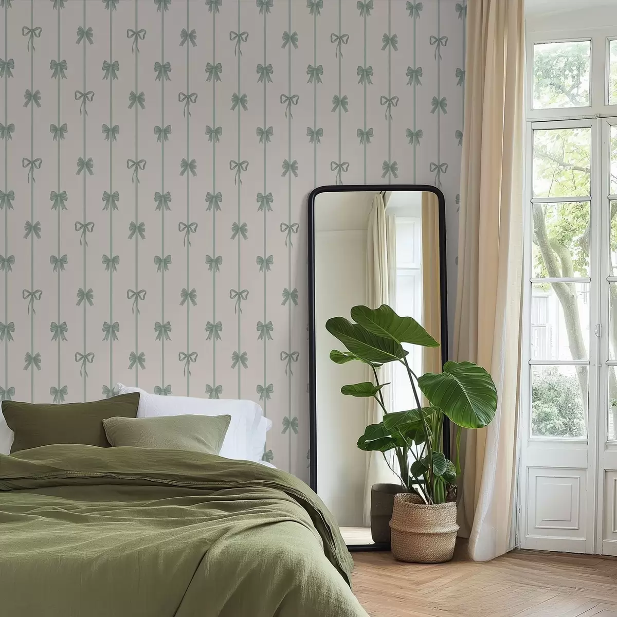 Behang Groene strikken met linten op een beige achtergrond Nr. a01074v1