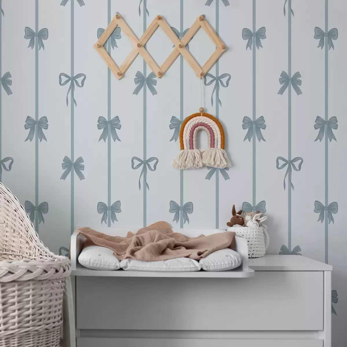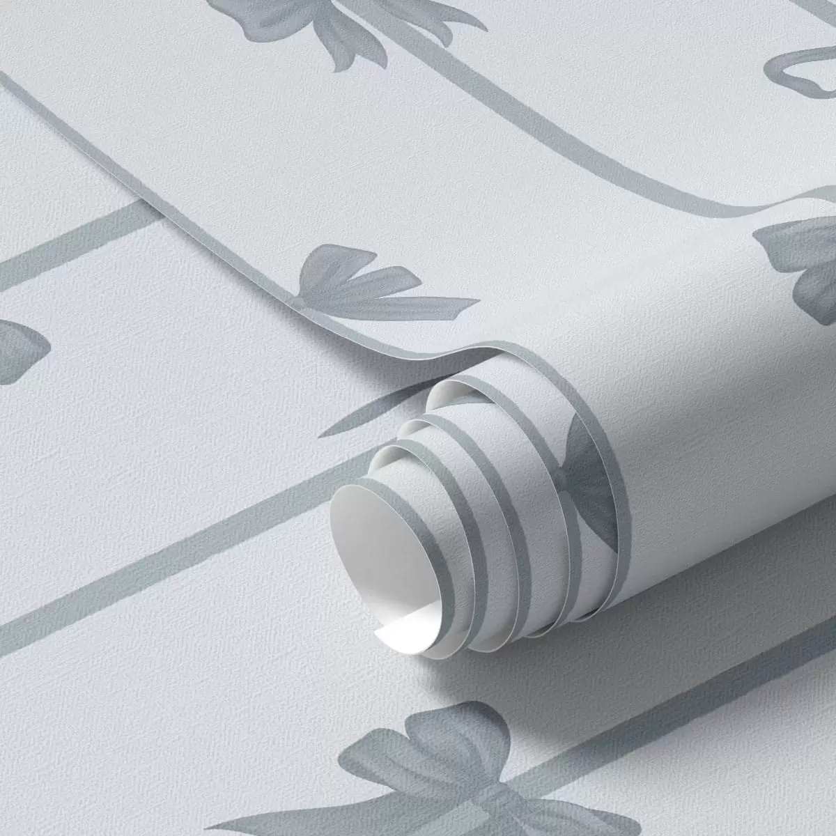 Behang Blauwe strikken met linten op een lichte achtergrond Nr. a01074v2