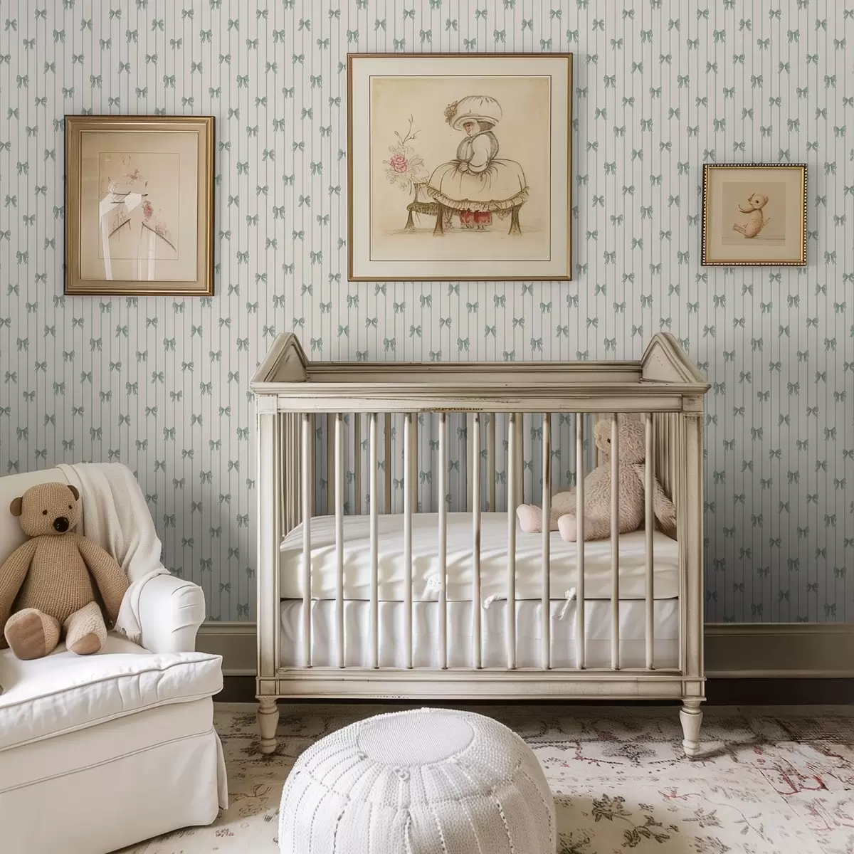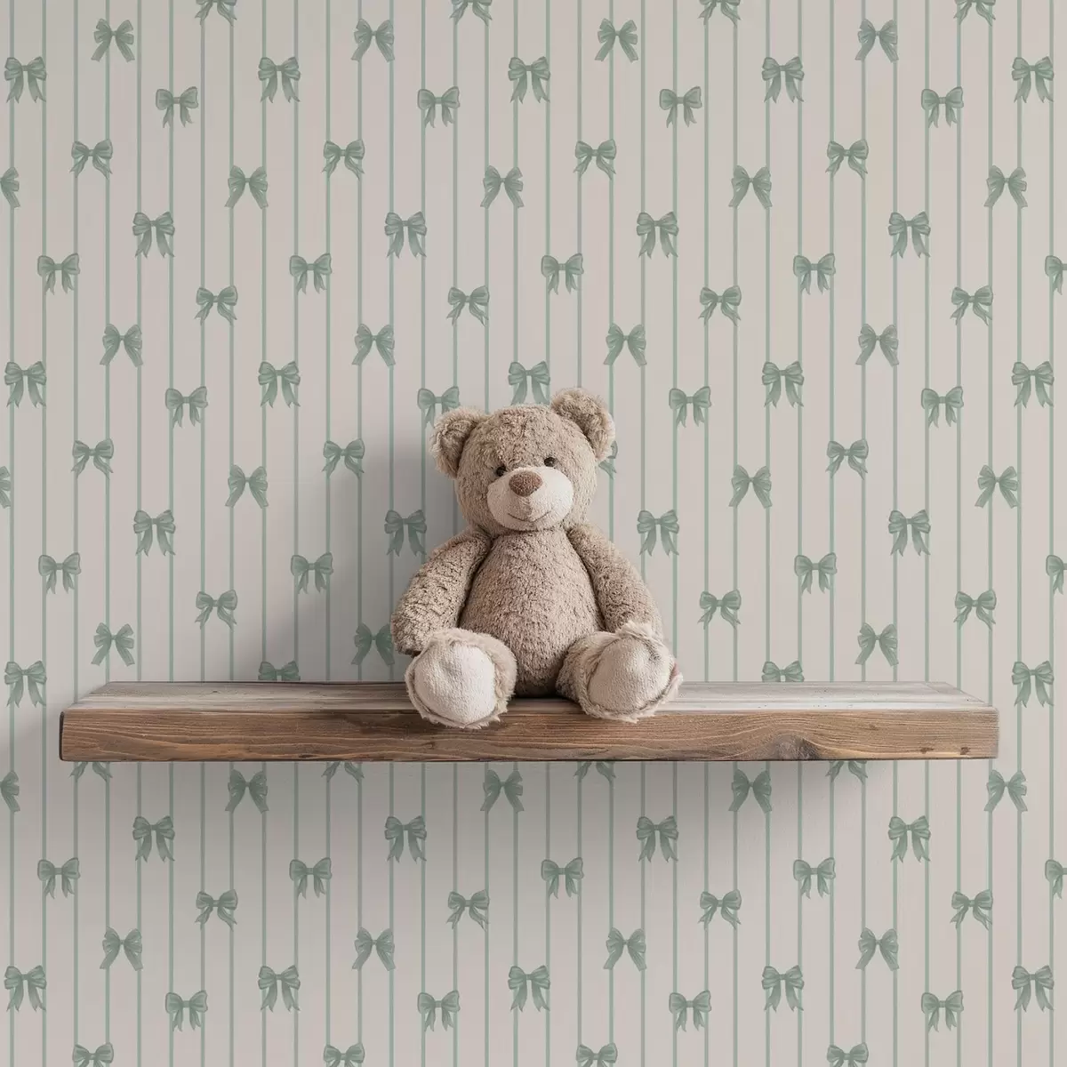 Behang Kleine groene strikjes in strepen op een beige achtergrond Nr. a01076v2