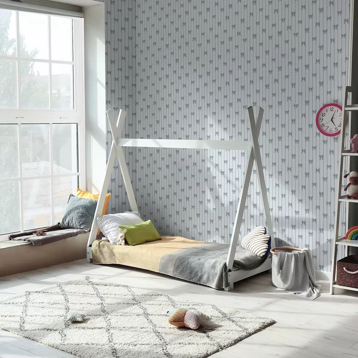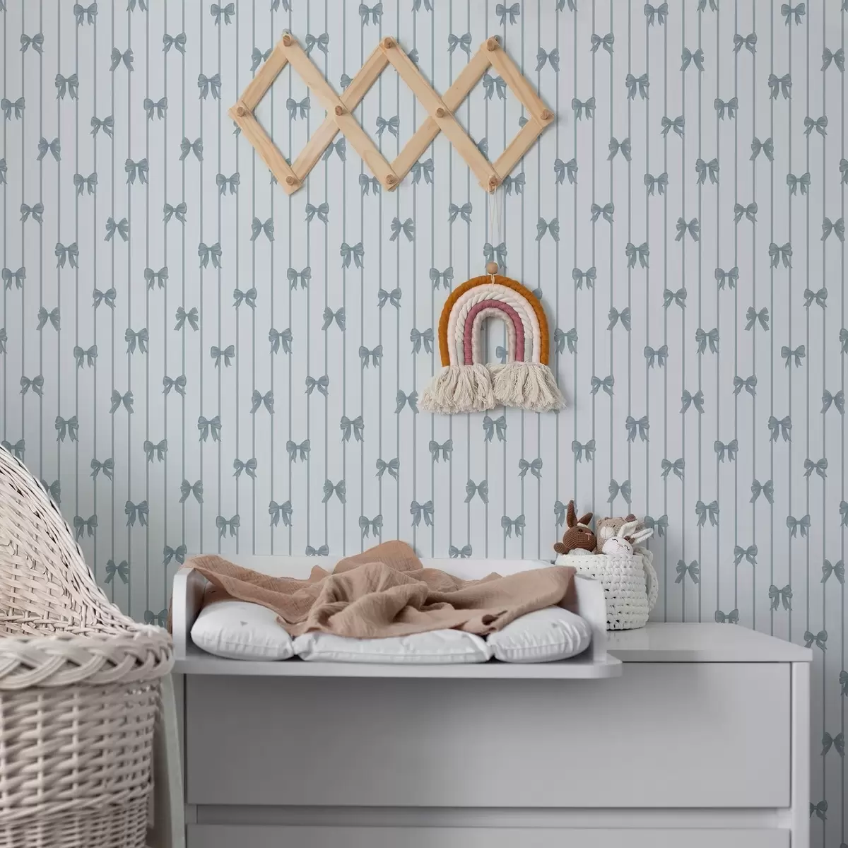 Behang Licht gestreept patroon met linten en strikken Nr. a01076v3