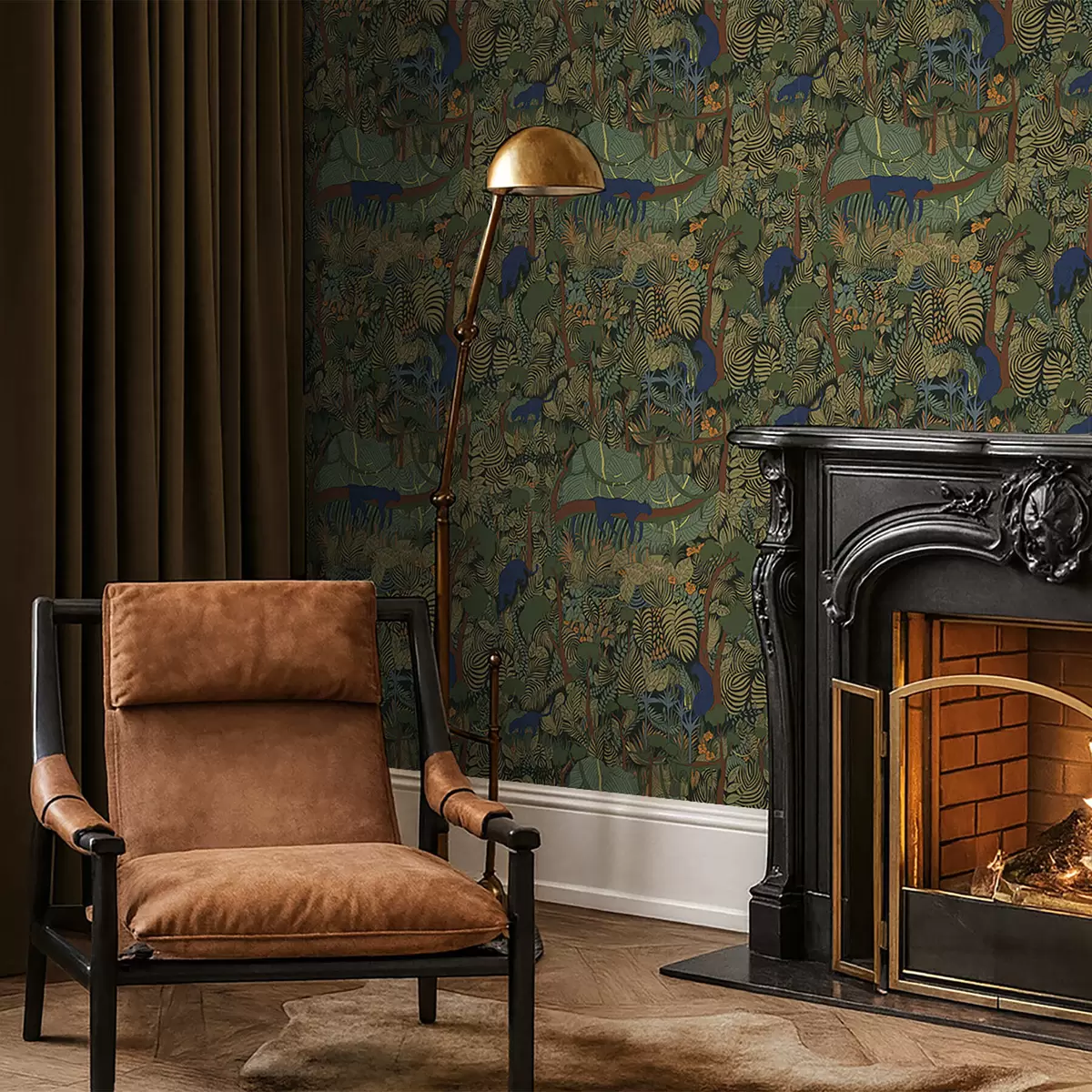Behang Donkere bos scène met dieren Nr. a01108v1
