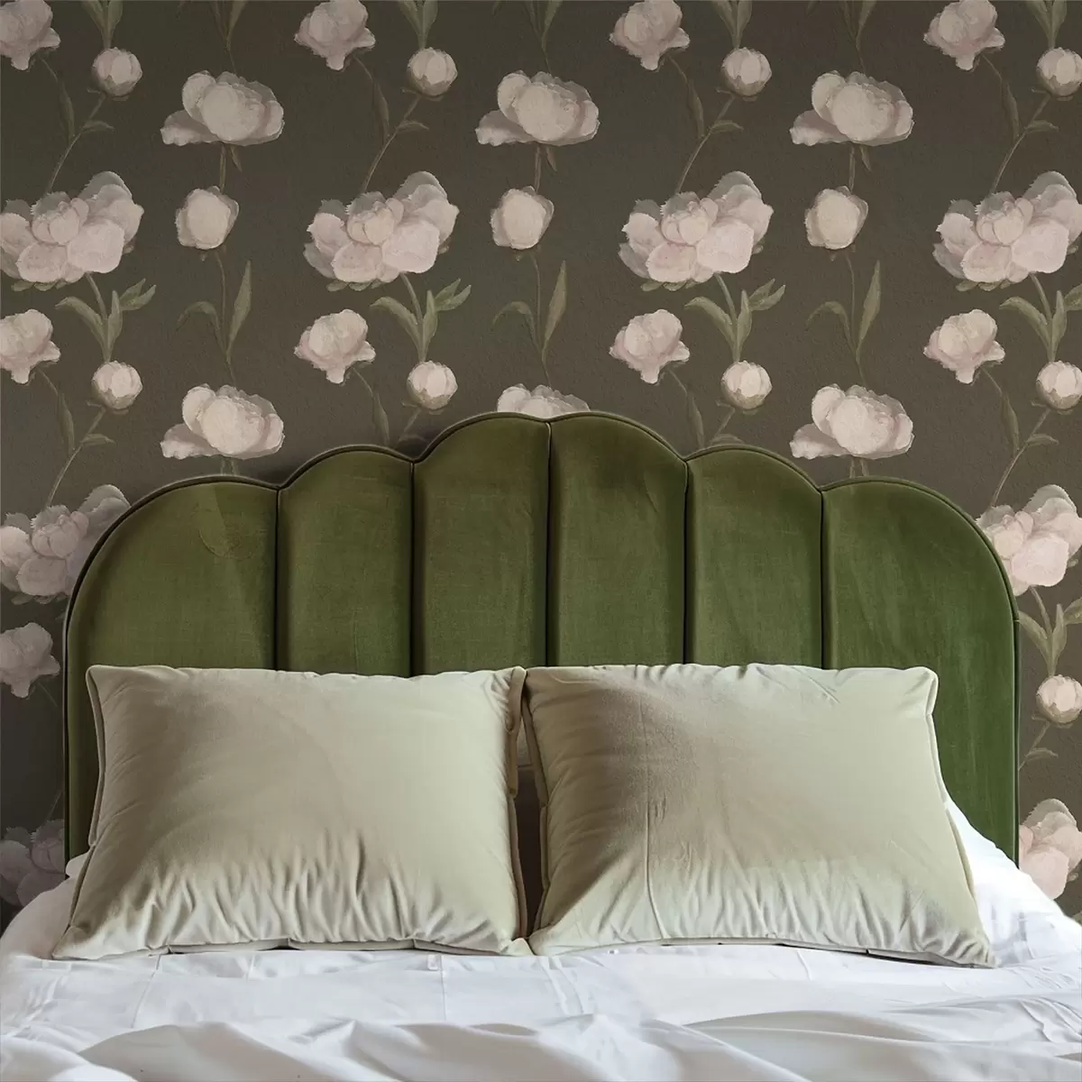 Behang Zachtroze pioenrozen op donkere achtergrond Nr. a01114v1