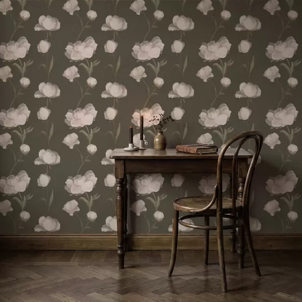 Behang Zachtroze pioenrozen op donkere achtergrond Nr. a01114v1
