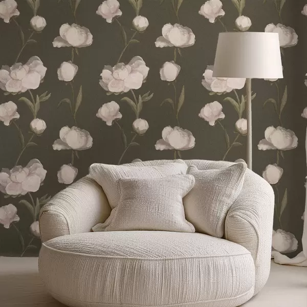 Behang Zachtroze pioenrozen op donkere achtergrond Nr. a01114v1