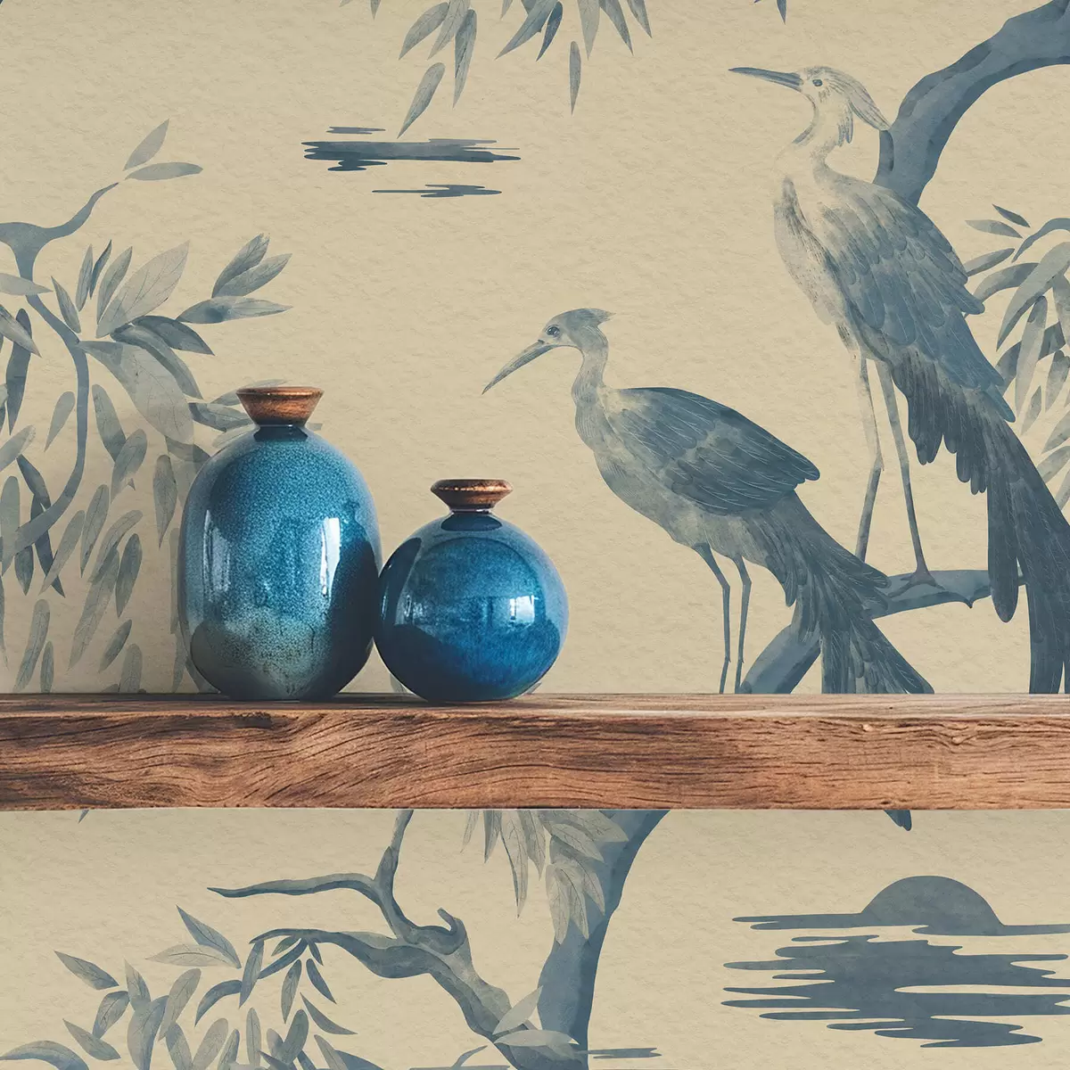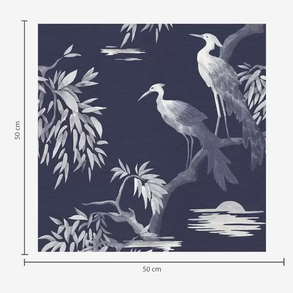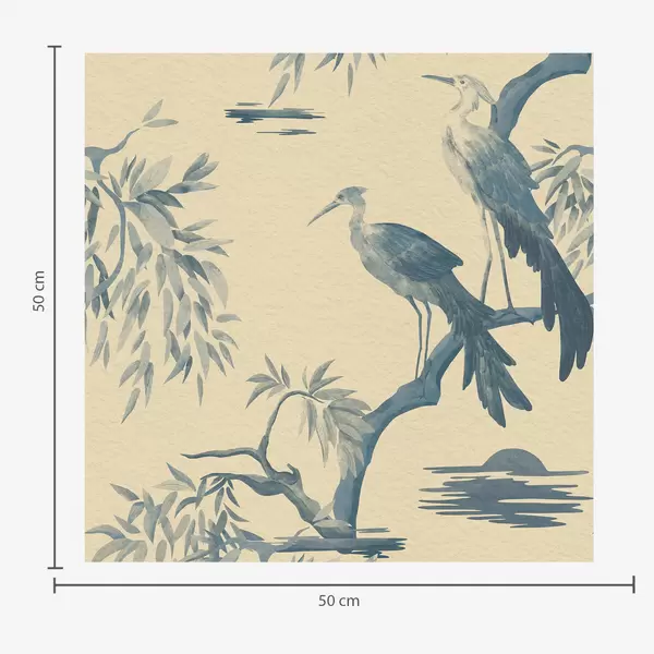 Behang Vogels op een tak in blauwe tinten Nr. a01116