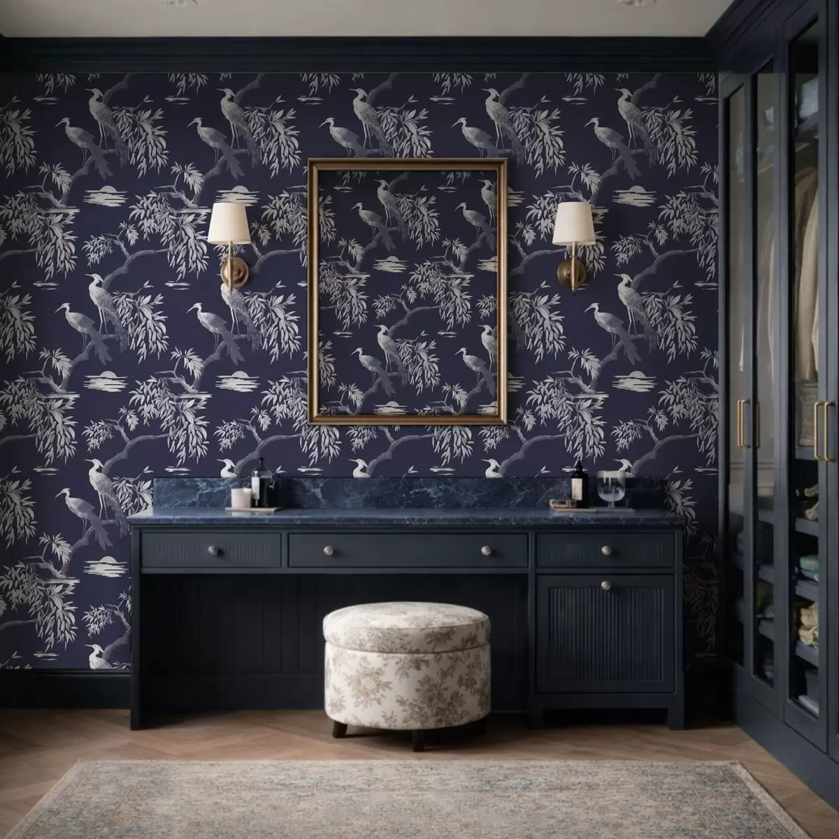 Behang Vogels op tak op donkerblauwe achtergrond Nr. a01116v1