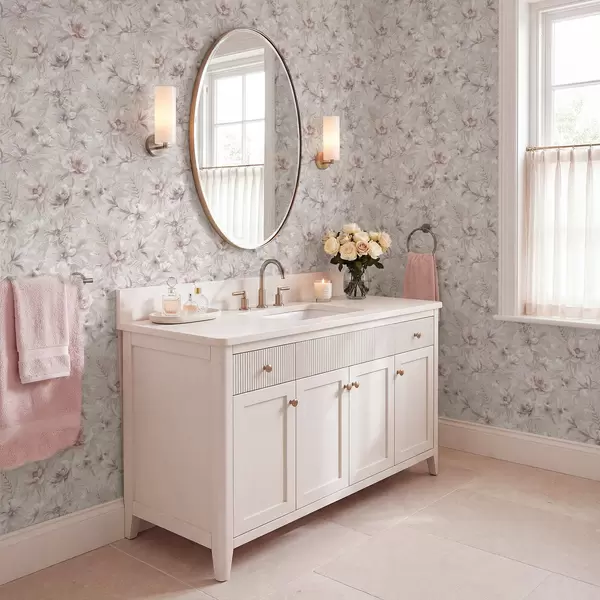 Behang Lichtpatroon met grote, sierlijke bloemen Nr. a01133