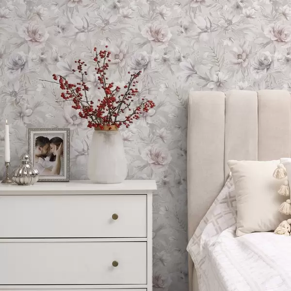 Behang Lichtpatroon met grote, sierlijke bloemen Nr. a01133