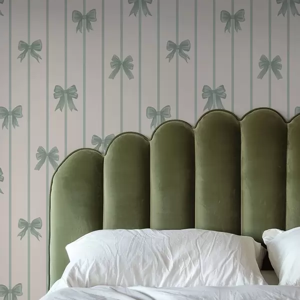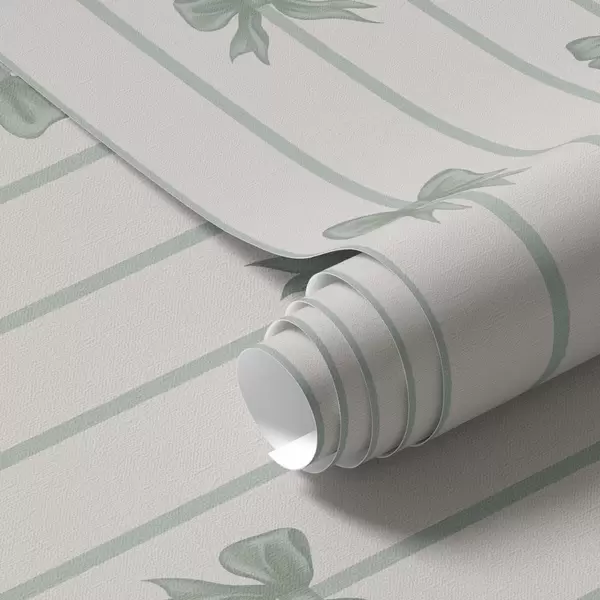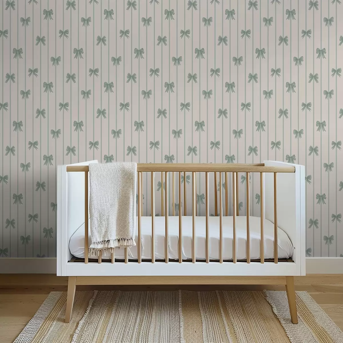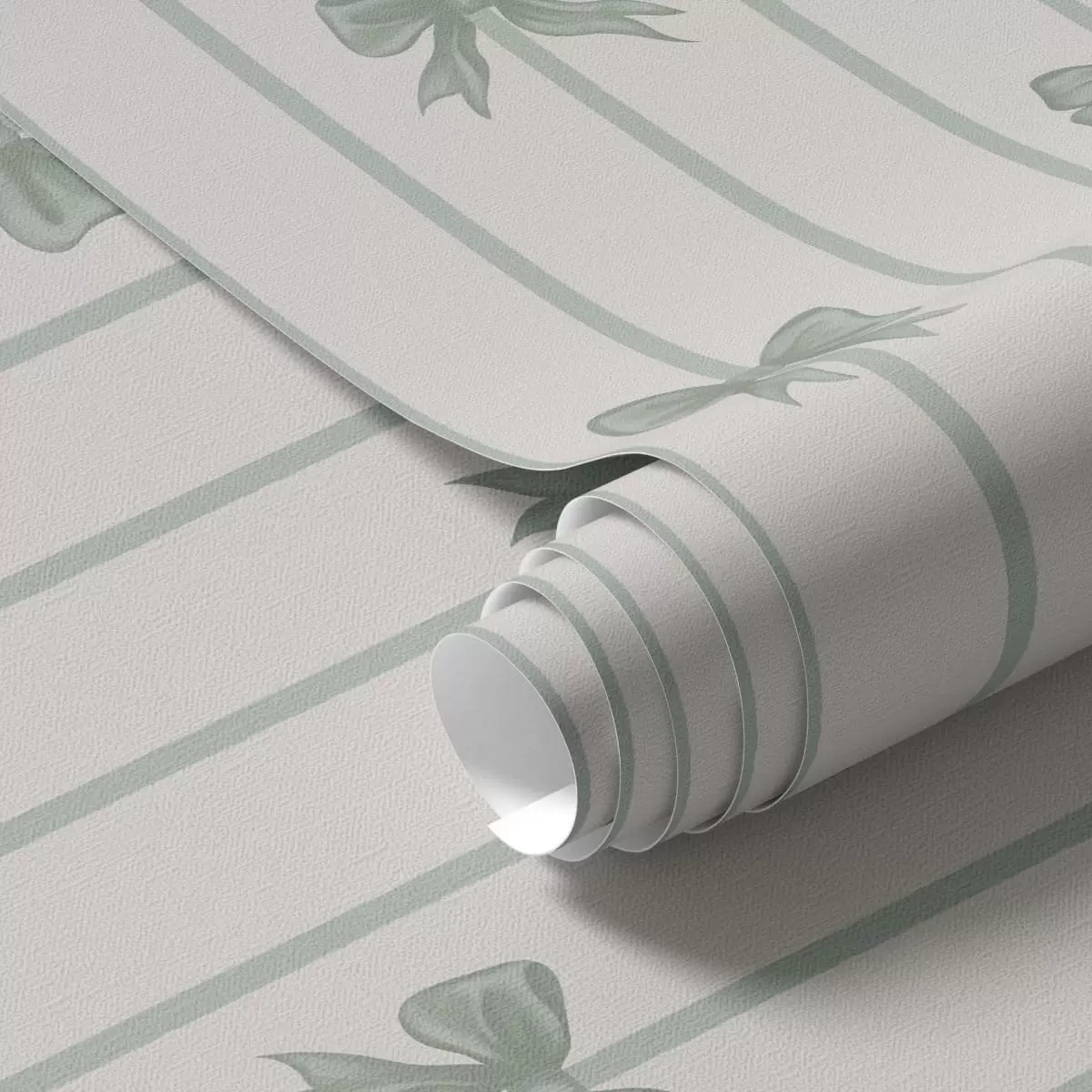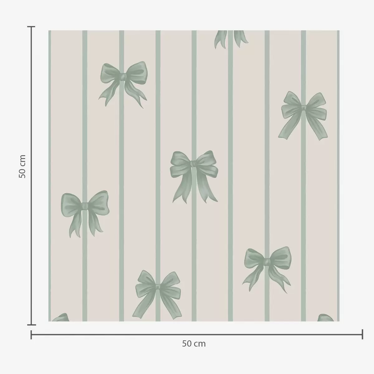 Behang Groene strikken op een gestreepte beige achtergrond Nr. a01162v1