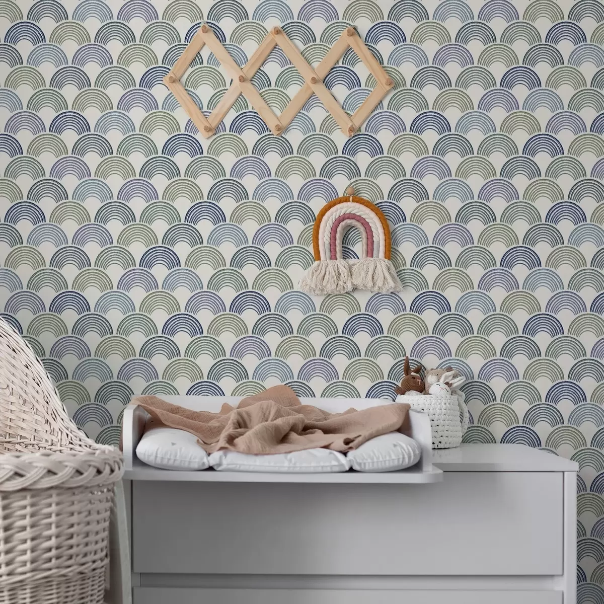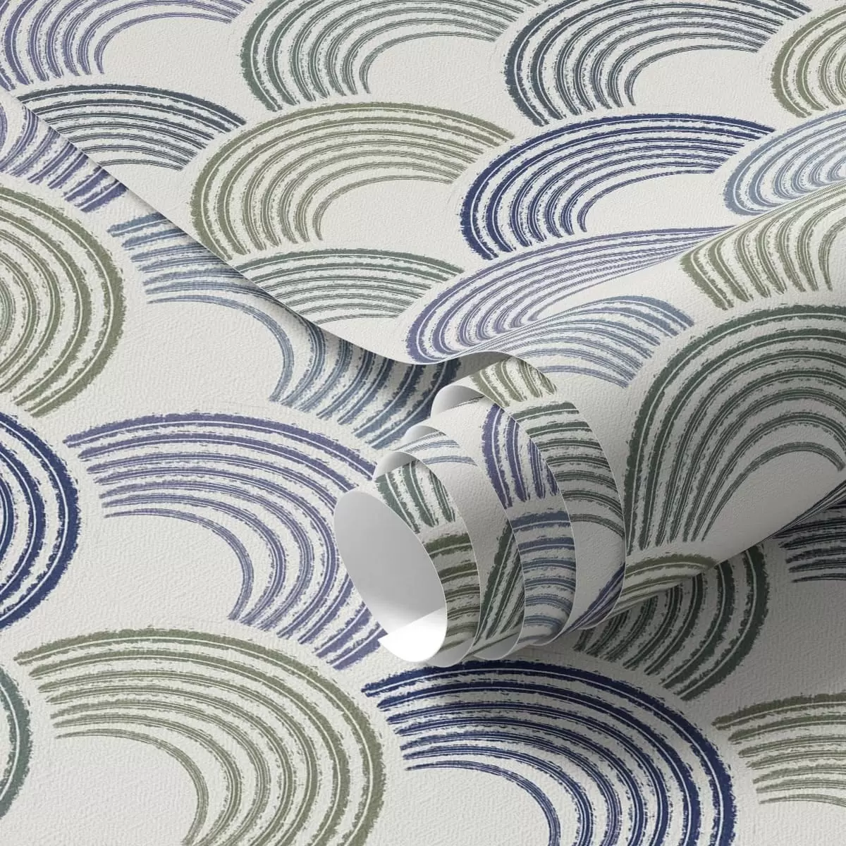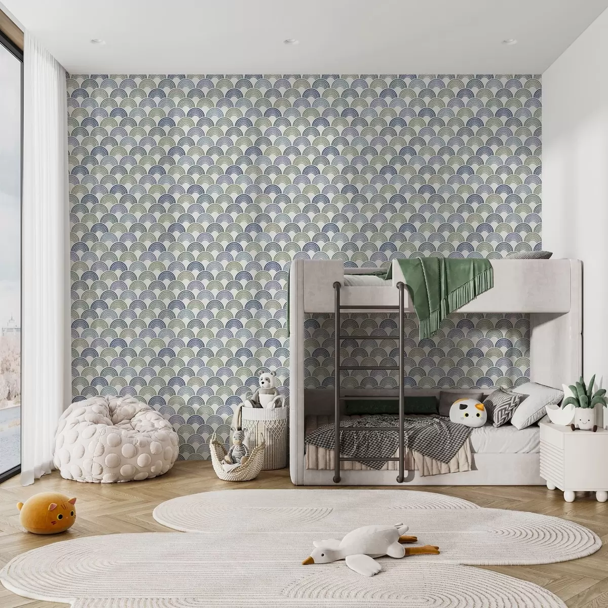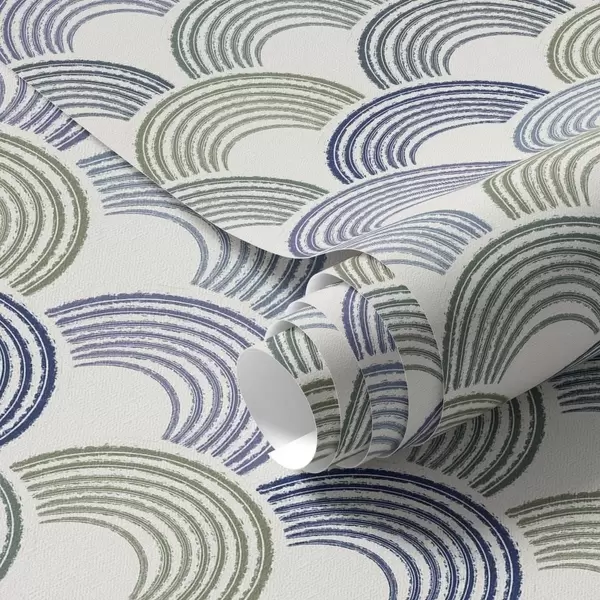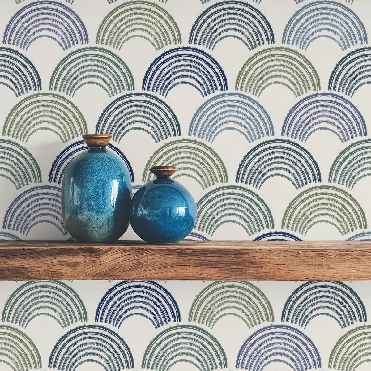 Behang Blauwe en groene bogen in een herhalend patroon Nr. a01164v2