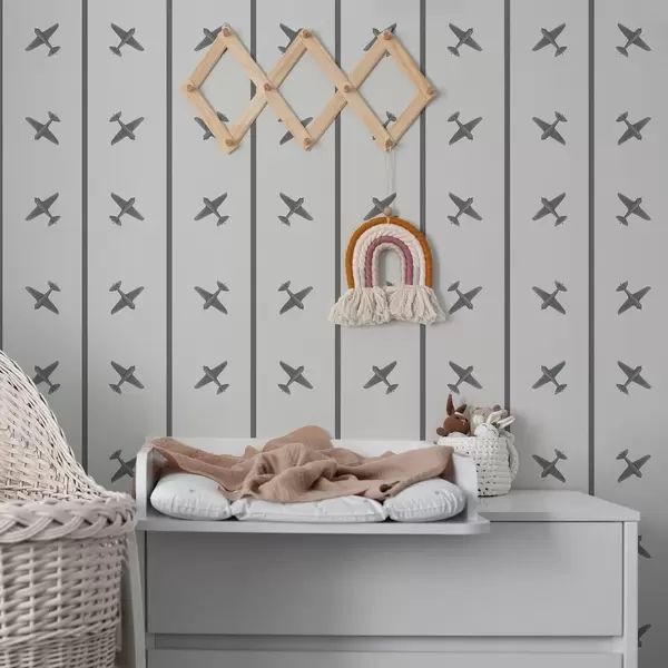 Behang Vliegtuigen met een gestreept patroon in grijstinten Nr. a01169v2