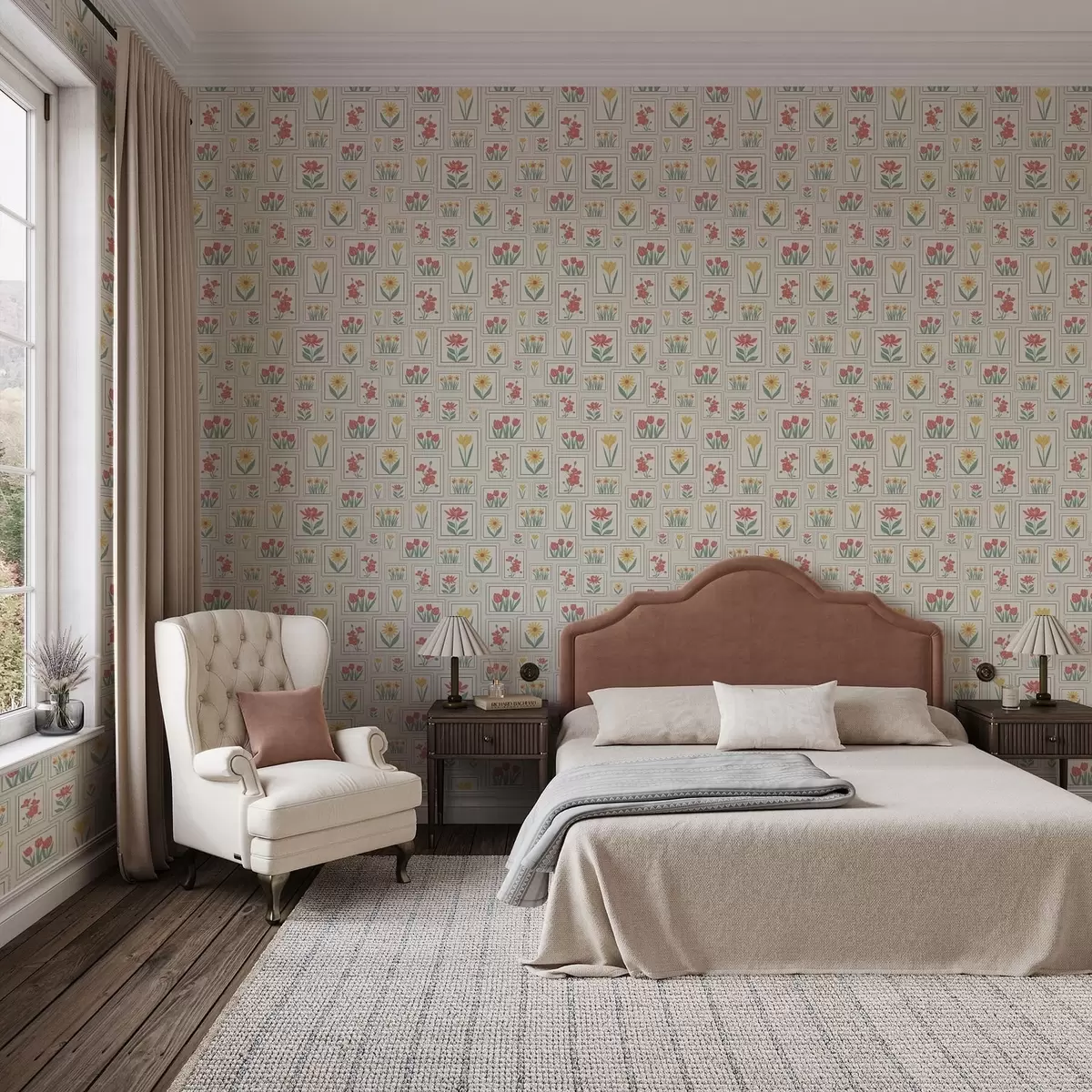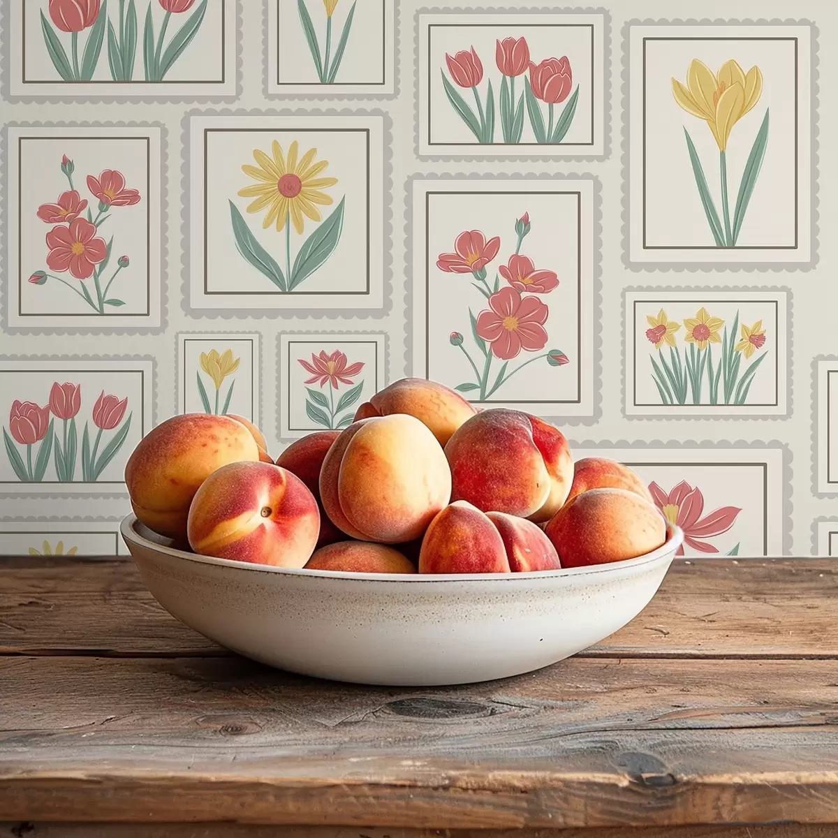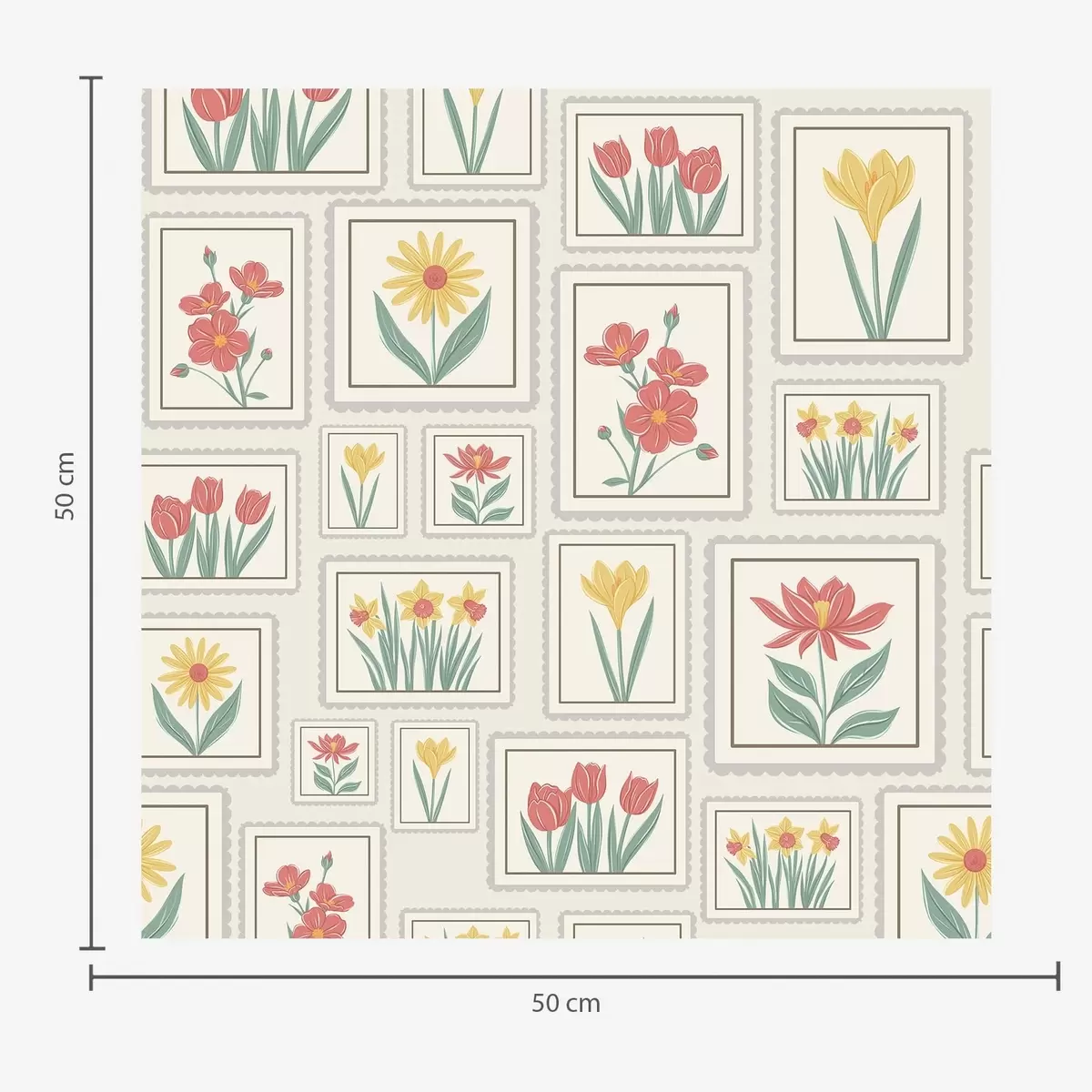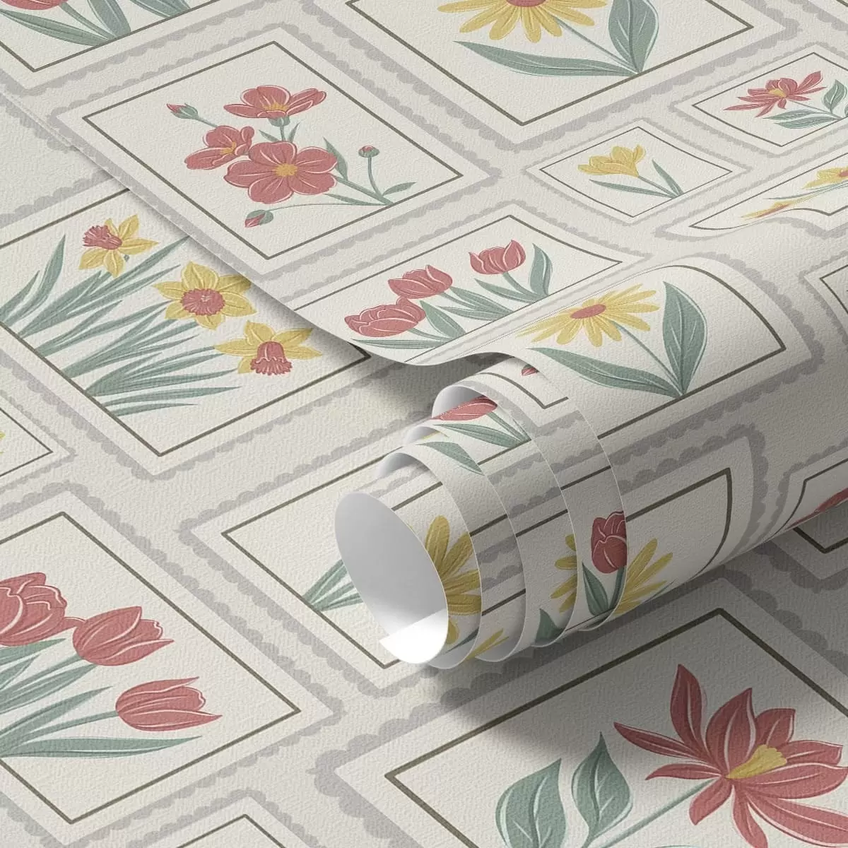 Behang Ingelijste bloemenillustraties op een lichte achtergrond Nr. a01173v1
