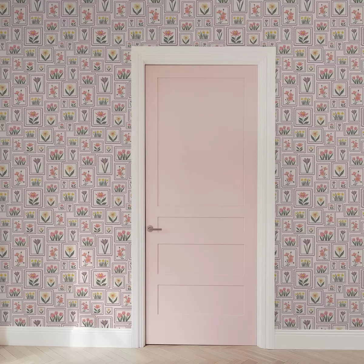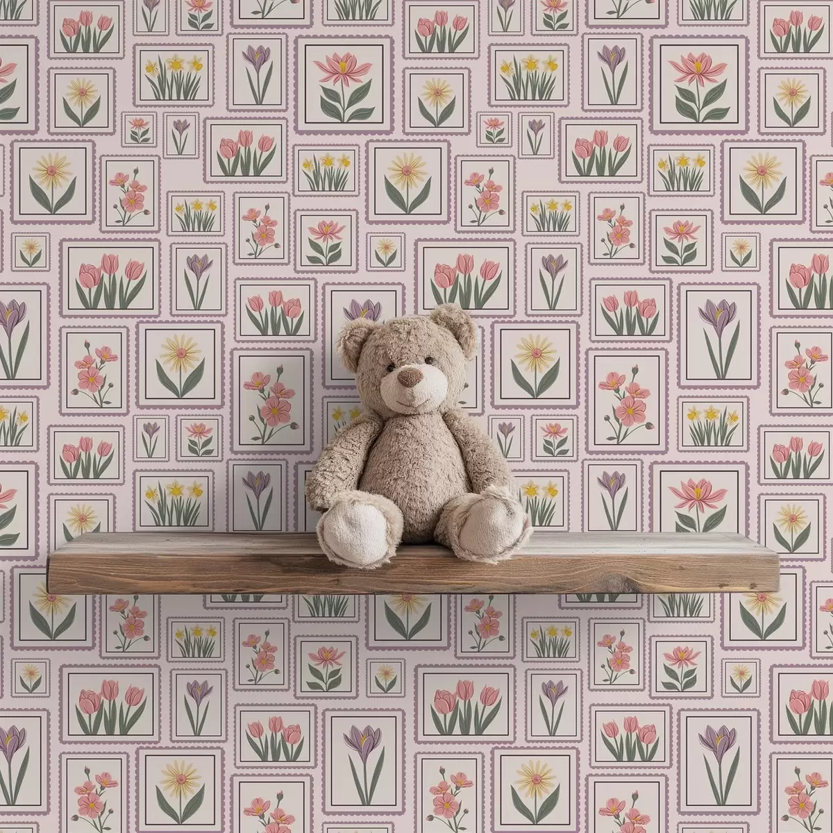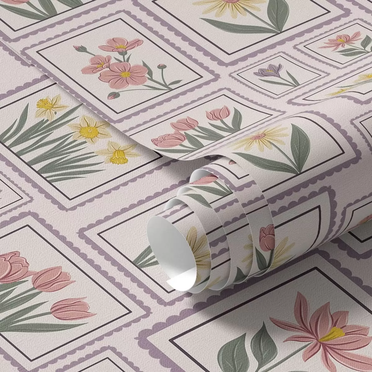 Behang Ingelijste bloemenillustraties in lila tinten Nr. a01173v2