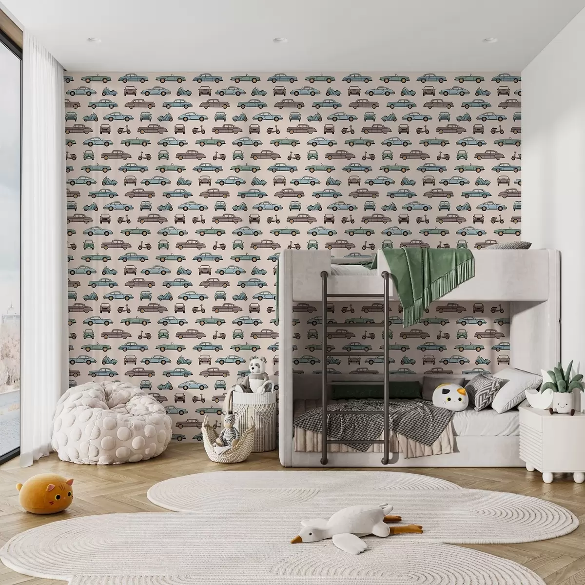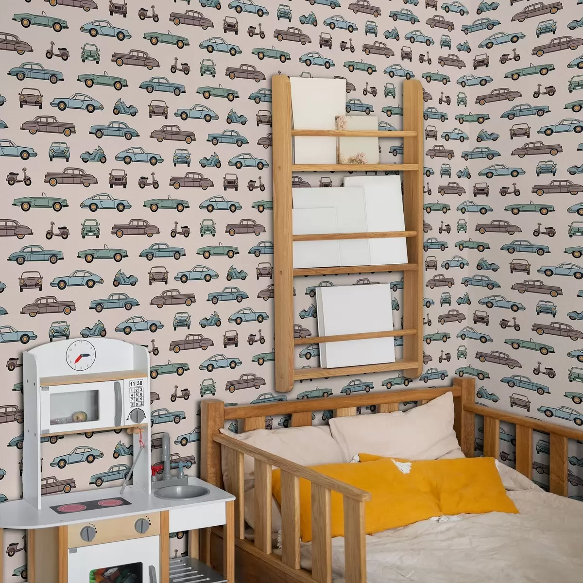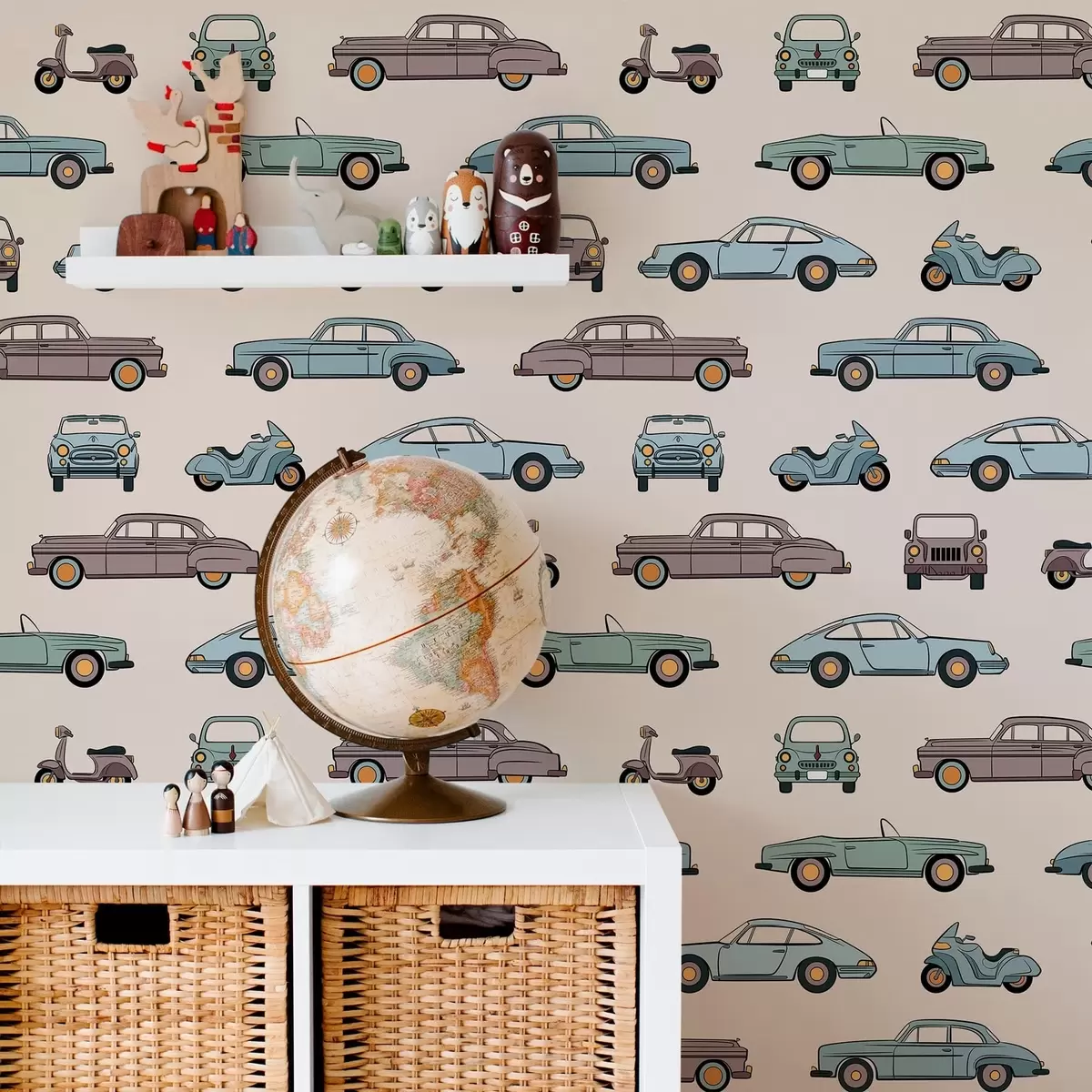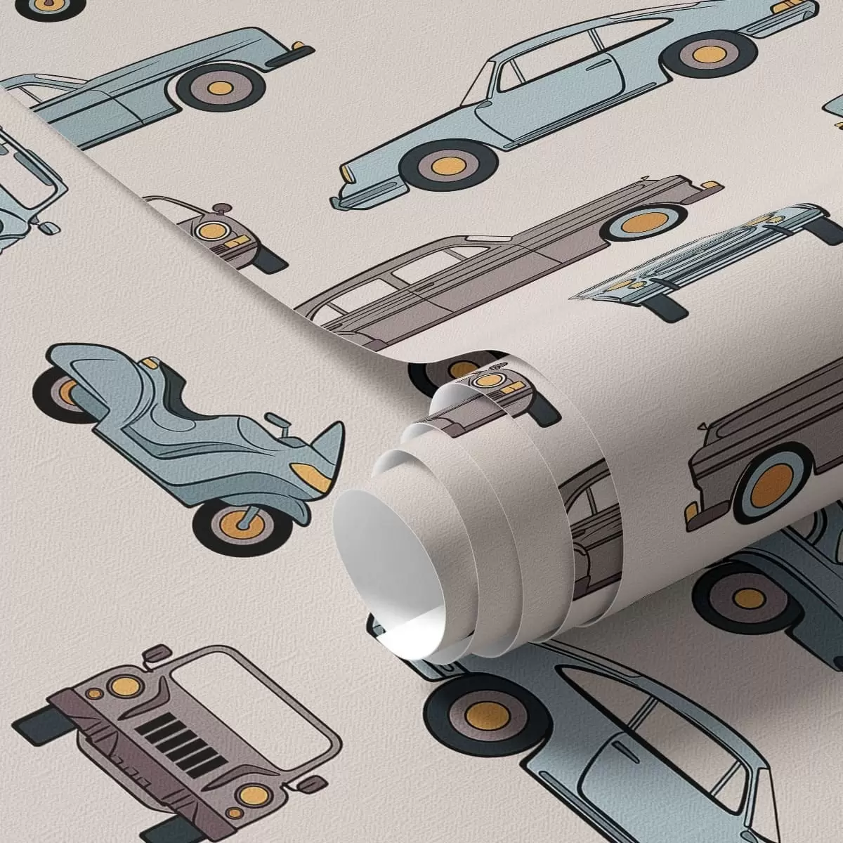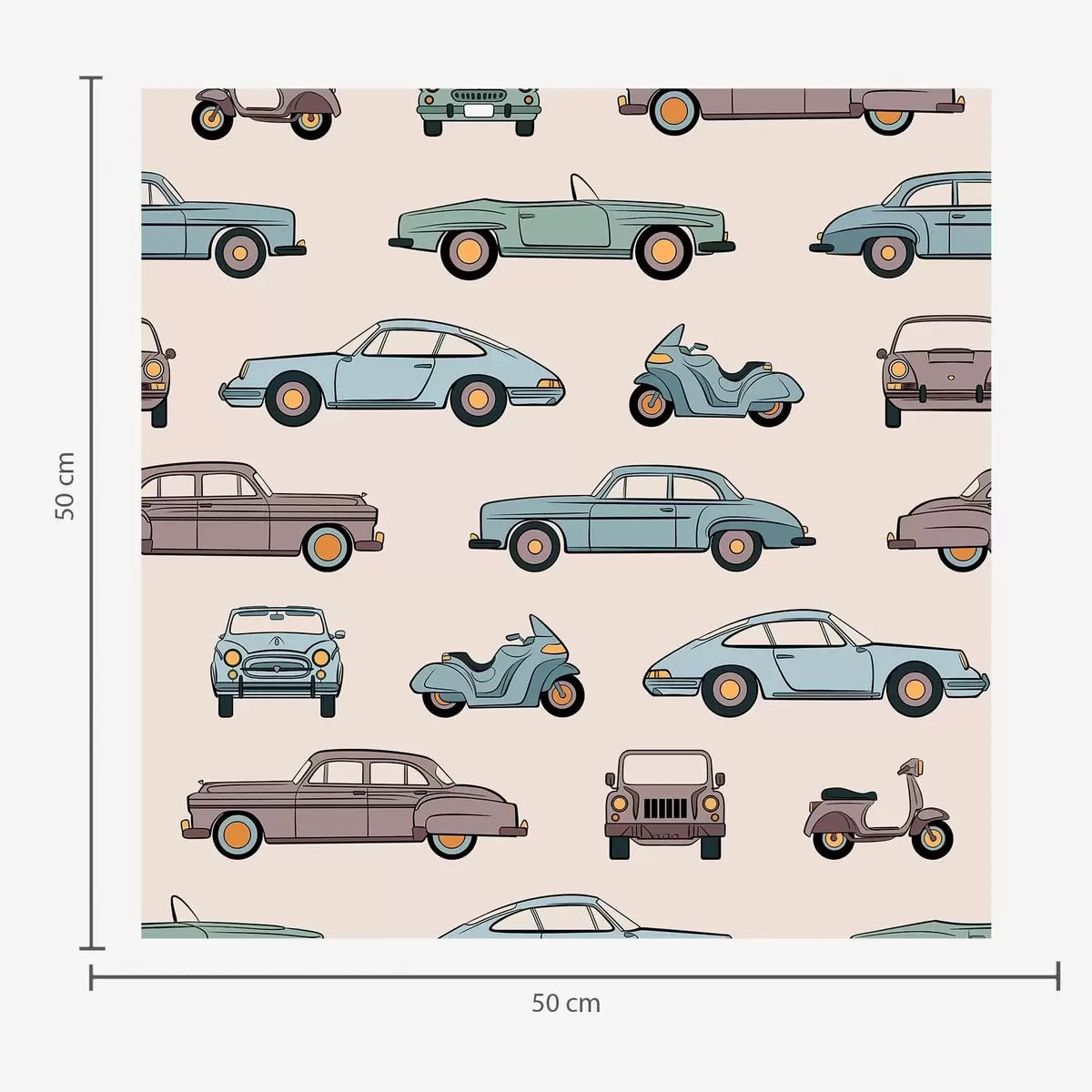 Behang Retro-auto’s en -scooters op een beige achtergrond Nr. a01178v1
