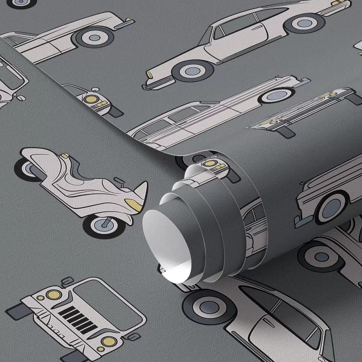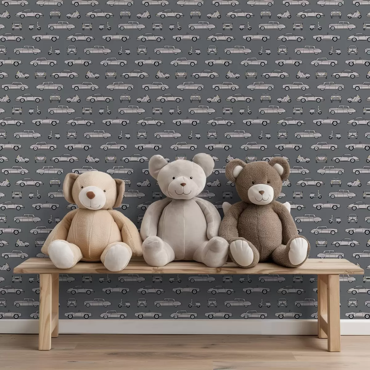 Behang Retro-auto's en -scooters op een donkere achtergrond Nr. a01178v3