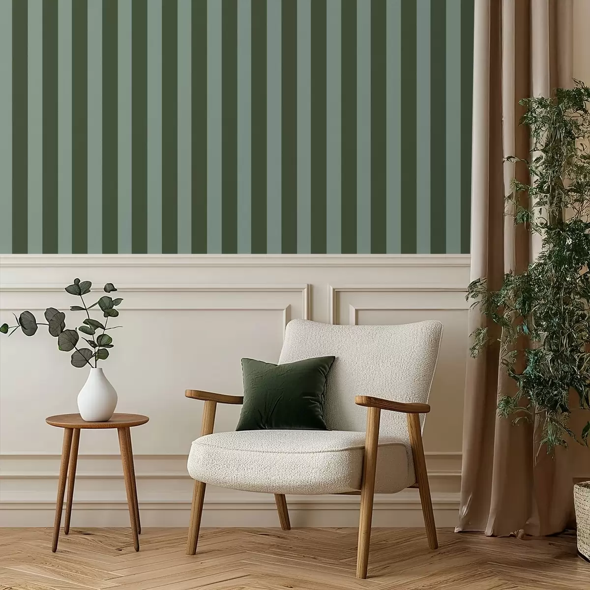Behang Donkergroene en lichte verticale strepen Nr. a01179v4