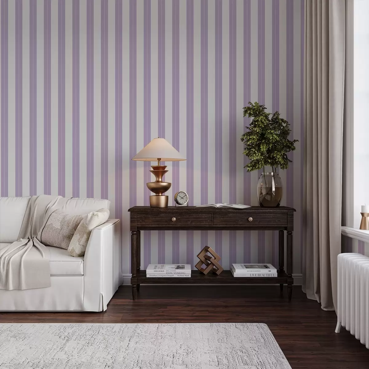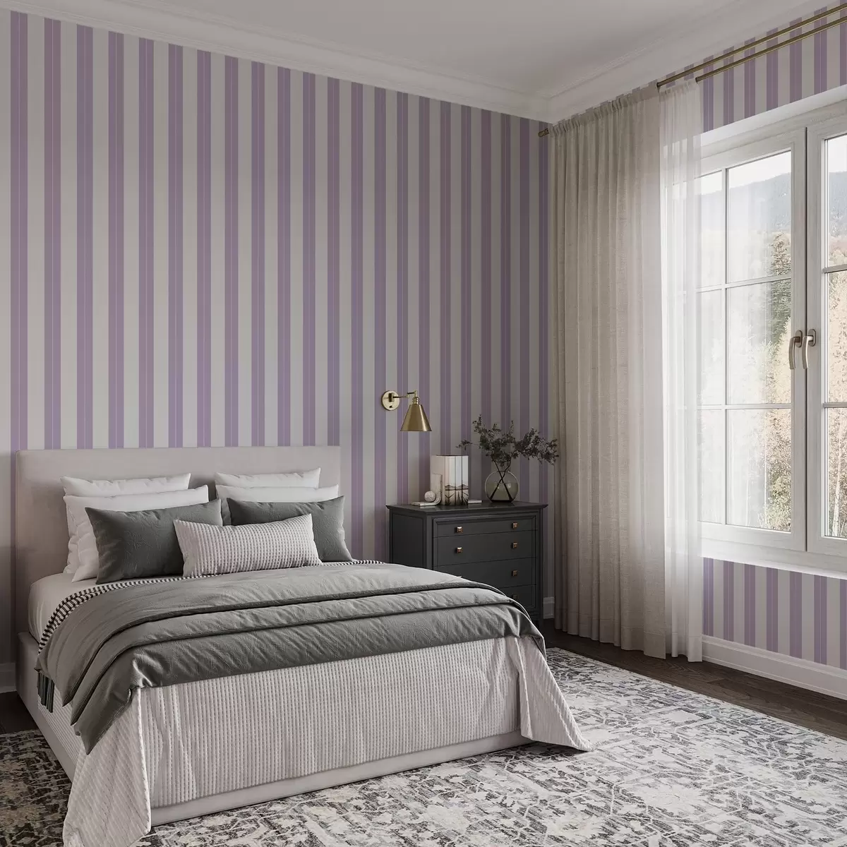Behang Lichtpaarse en grijze verticale strepen Nr. a01181v3