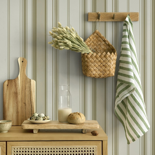 Behang Roze strikken op verticale strepen tegen een lichte achtergrond