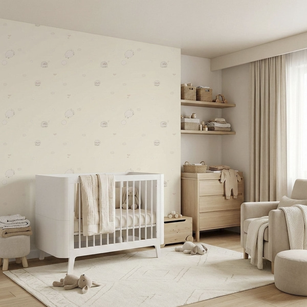 Behang Grijze klokjesbloemen op lichtbeige achtergrond