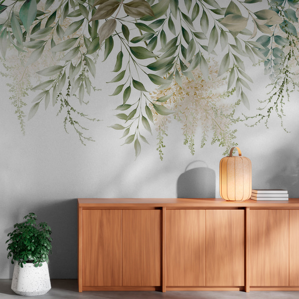 Muurschildering Wilde planten ophangen tegen een lichte achtergrond