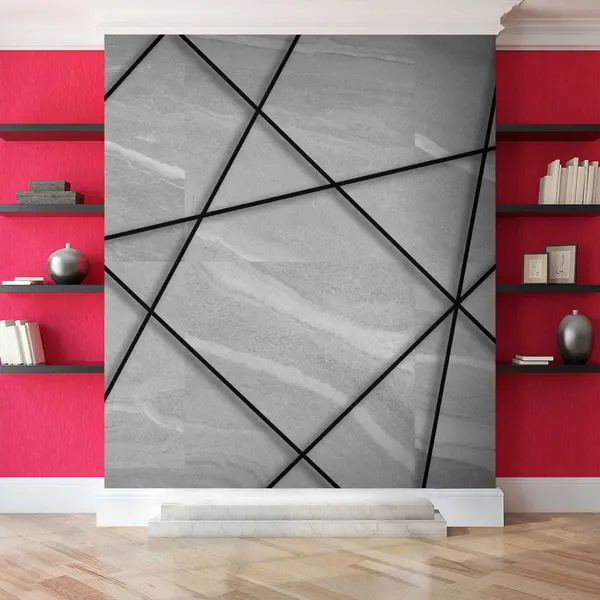Fotobehang Grijs marmer en zwarte lijnen N° u16341