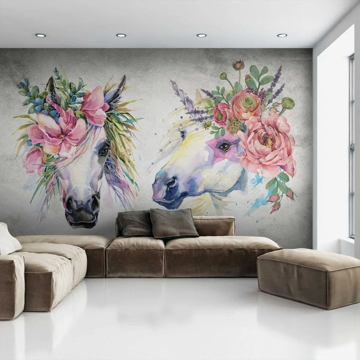 Fotobehang Paarden met bloemen N° u14264