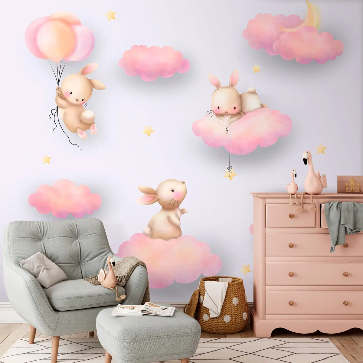 Fotobehang Konijntjes op de wolken in kinderstijl N° u96613
