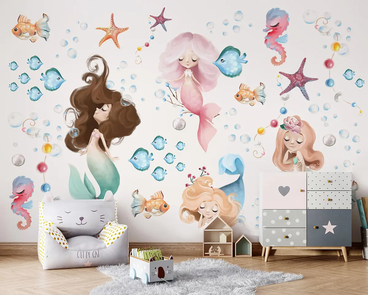Fotobehang Aquarel zeemeerminnen en vissen N° u96868