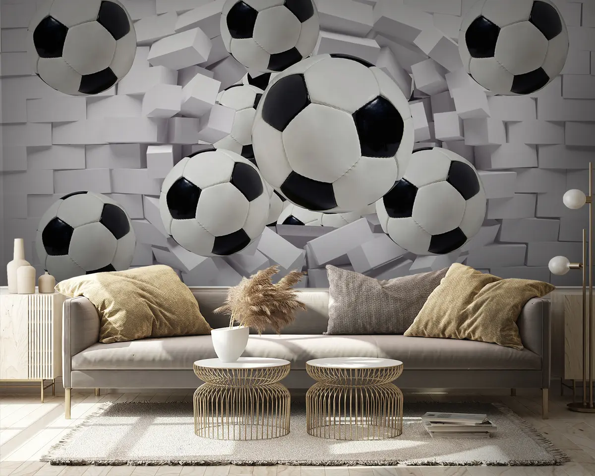 Fotobehang Voetballen op de achtergrond van een bakstenen muur N° u94958