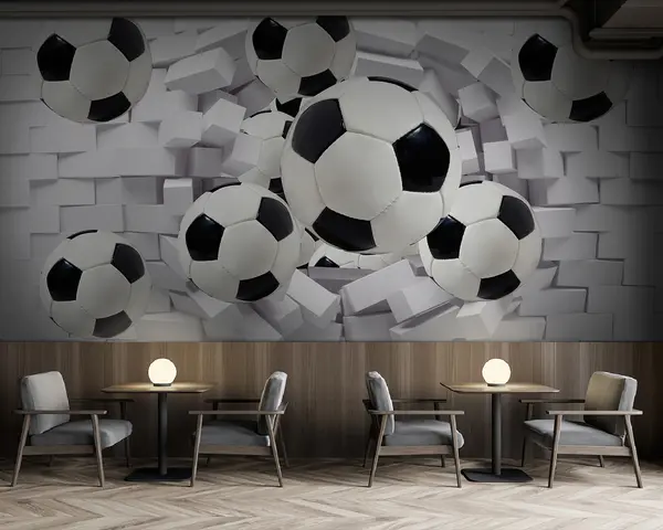 Fotobehang Voetballen op de achtergrond van een bakstenen muur N° u94958
