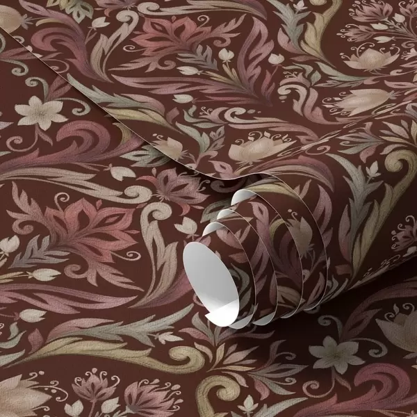 Behang Tulpornament, rijke bordeauxrode achtergrond Nr. a00827v2