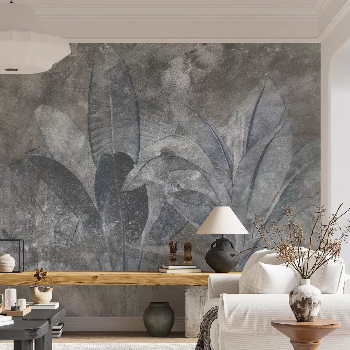 Fotobehang Bananenbladeren op een stenen achtergrond N° u73884v3