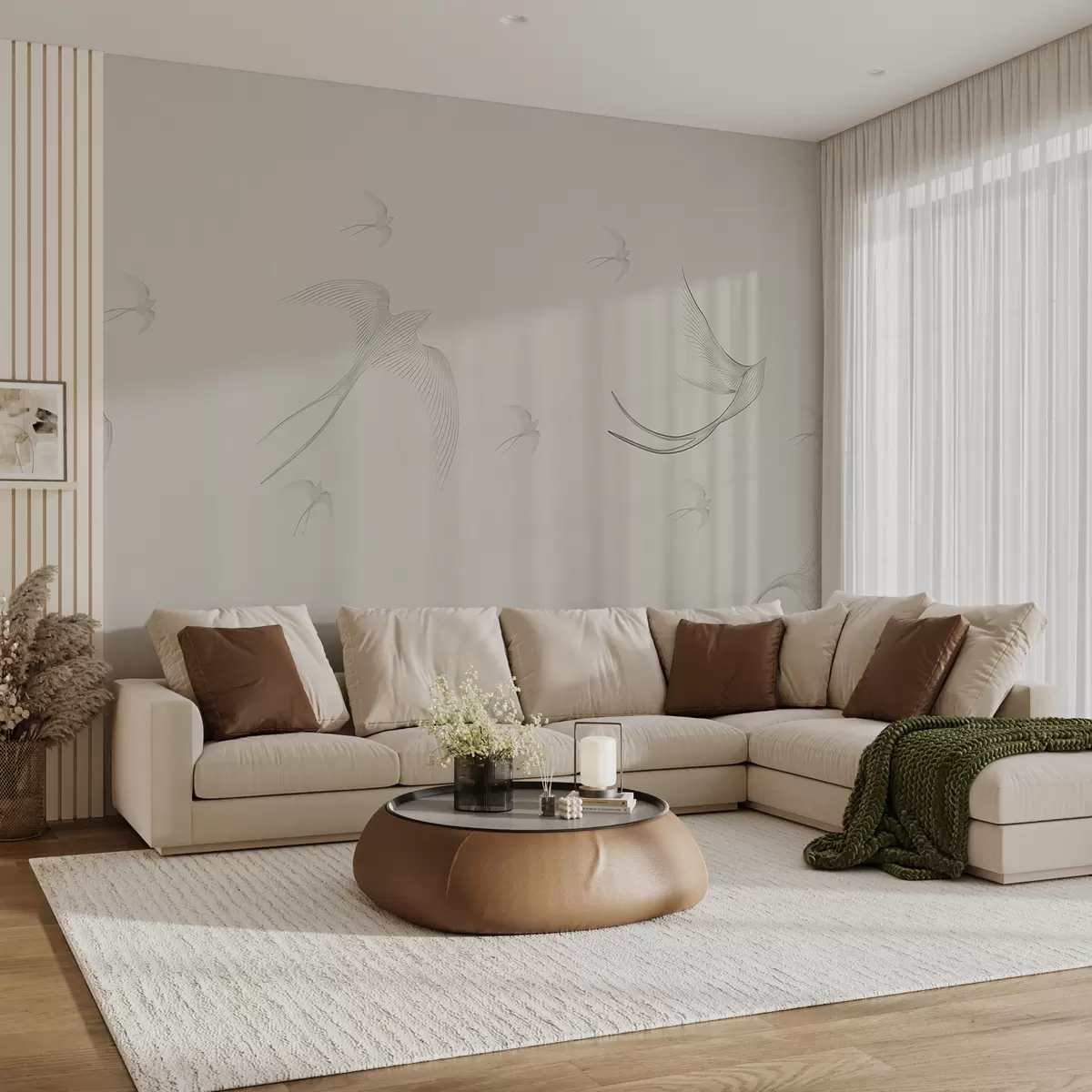 Fotobehang Lineaire zwaluwen op een beige achtergrond N° w01264v1