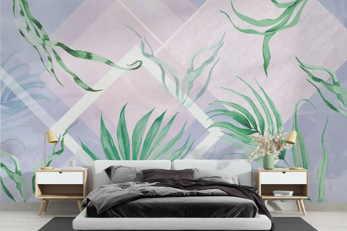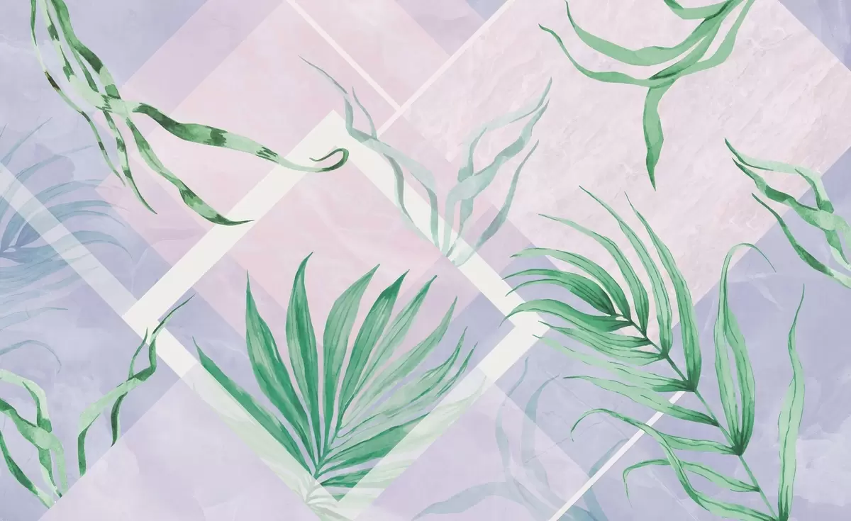 Fotobehang Weelderig groen op een zachte pastelkleurige achtergrond N° w01625